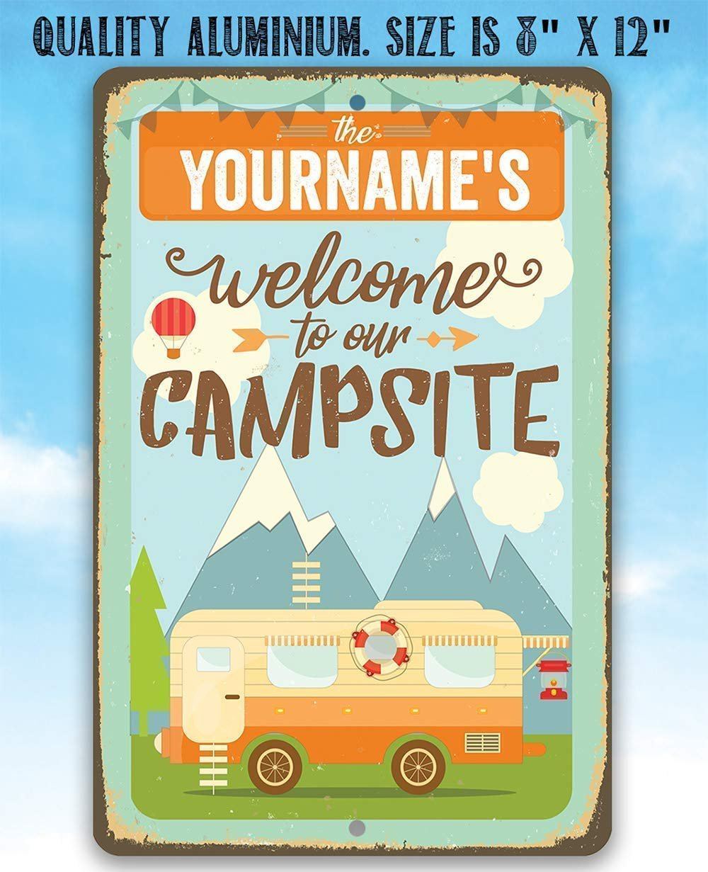 Personalized Welcome To Our Campsite Metal Sign - 8" x 12" or 12" x 18" Use Indoor/Outdoor-Decor for Camp, RV, Backyard and Retreat Facility