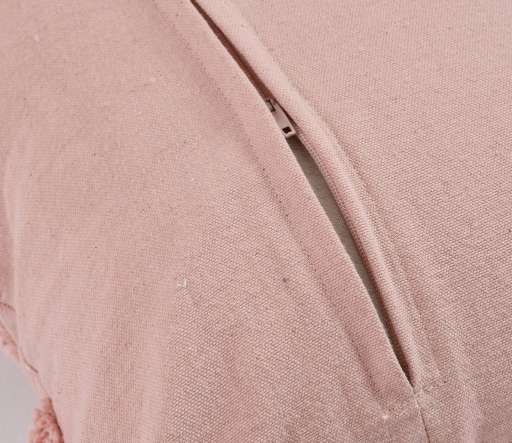 This beautiful 40x40cm cushion cover is handcrafted from 100% pure cotton, featuring a delightful tufted texture in a soft, blush pink hue. The raised tufted design adds depth and dimension, creating a stunning focal point for your sofa, bed, or favorite armchair. Playful tassels adorn each corner, adding a touch of whimsy and bohemian charm.