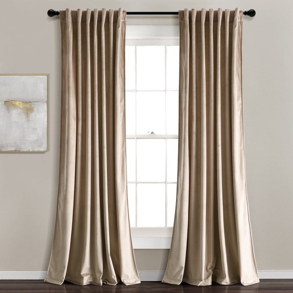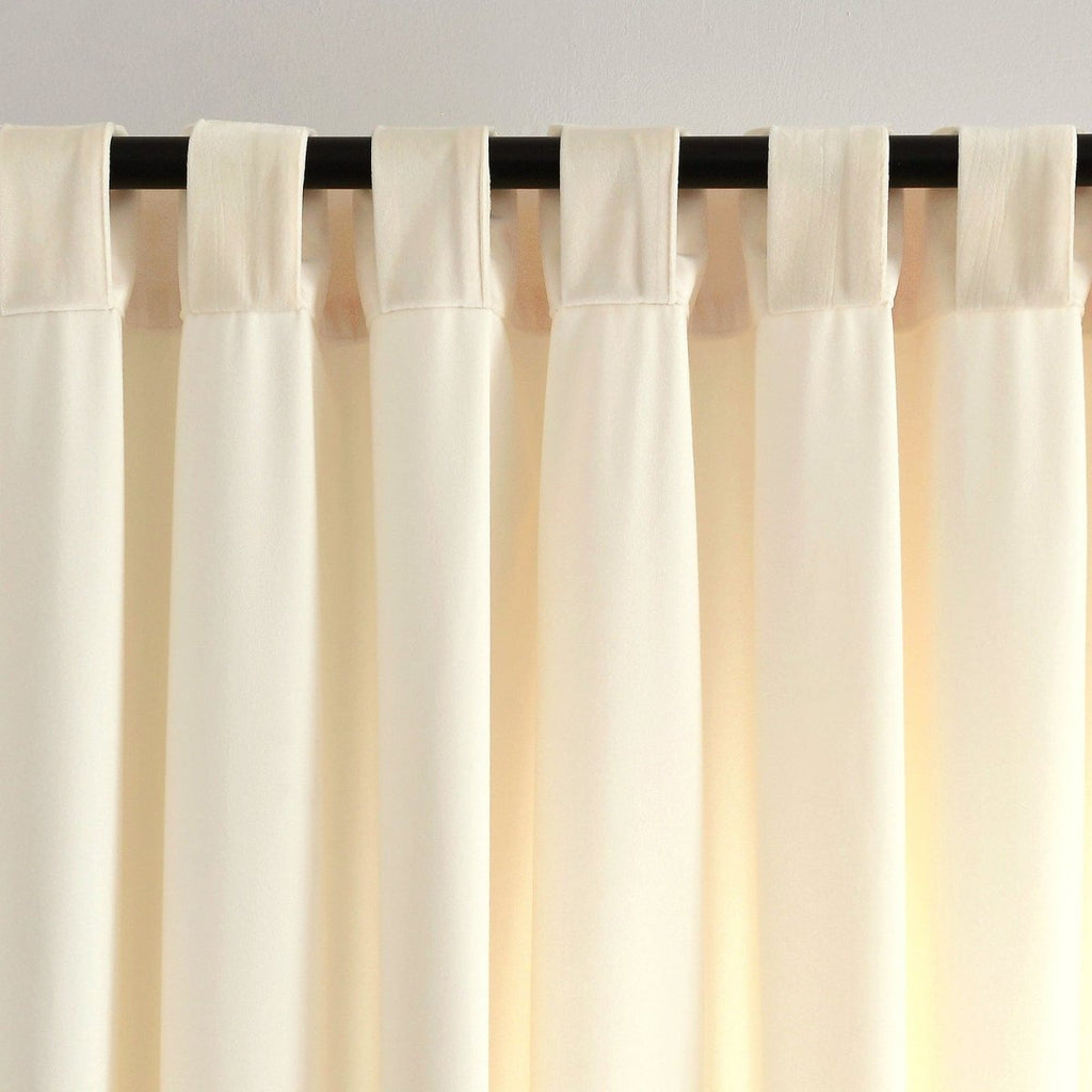 Our Prima Velvet Solid Back Tab Rod Pocket Light Filtering Window Curtain Panel Set conveniently comes in a set of two panels in your choice of color options. No matter which color you choose, each panel will measure 54 inches wide and 84 inches long. Please note: more color and size options are available in grommet style.