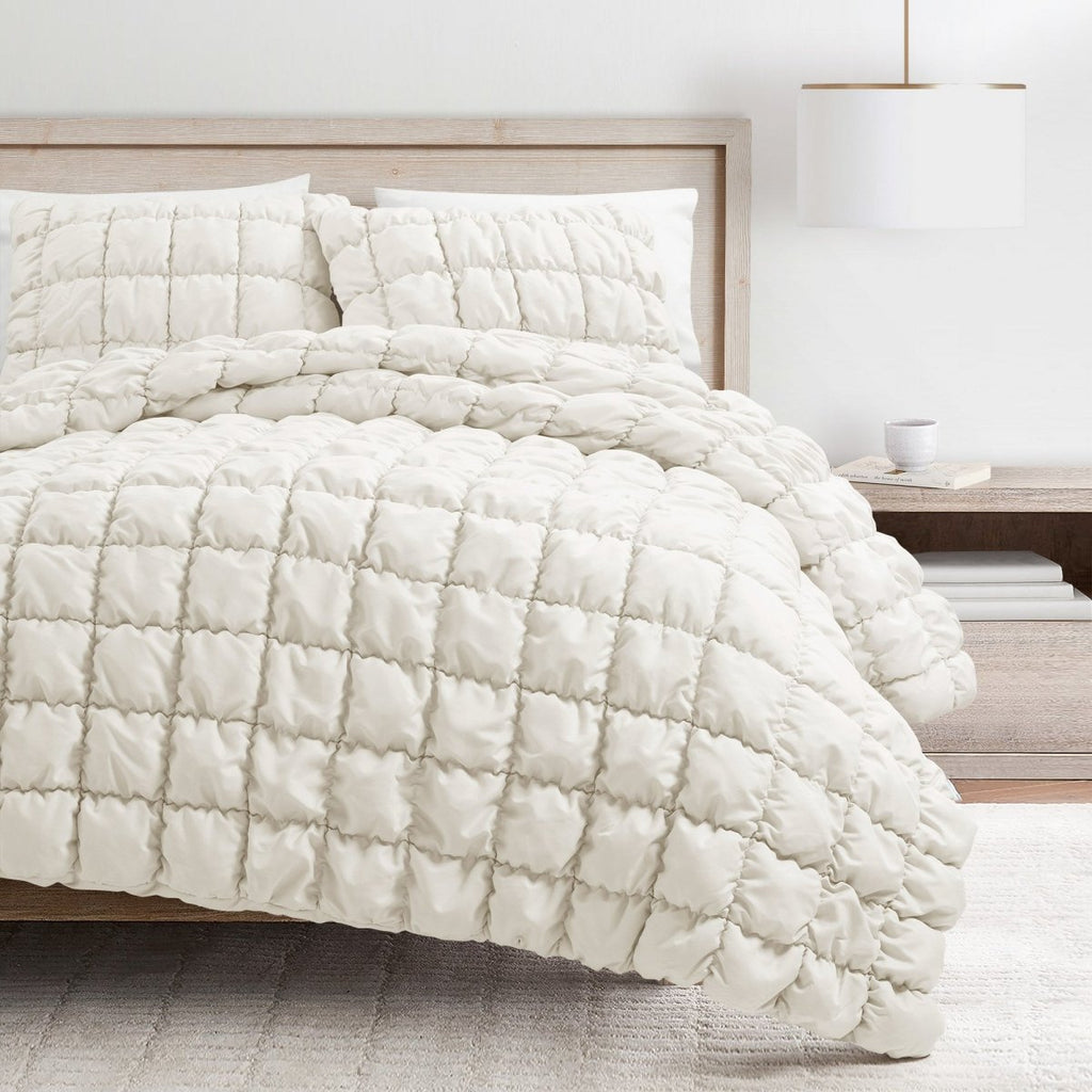 The luxurious comfort and coziness of this Puff Quilted Comforter Set will make you wish you could stay in bed all day! This textured neutral bedding is the perfect addition to a primary, guest or teen's bedroom and especially as dorm decor for relaxing in style between study sessions.