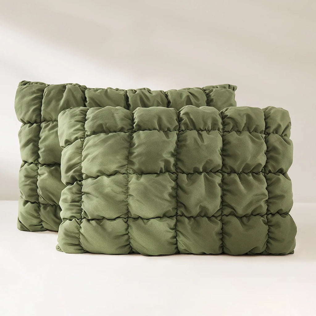 Indulge in the super soft cloud-like texture this luxurious Puff Comforter Set has to offer. The simple square quilting pattern and solid color design of this comforter and sham set make it ideal for a minimalist or modern bedroom styles.
