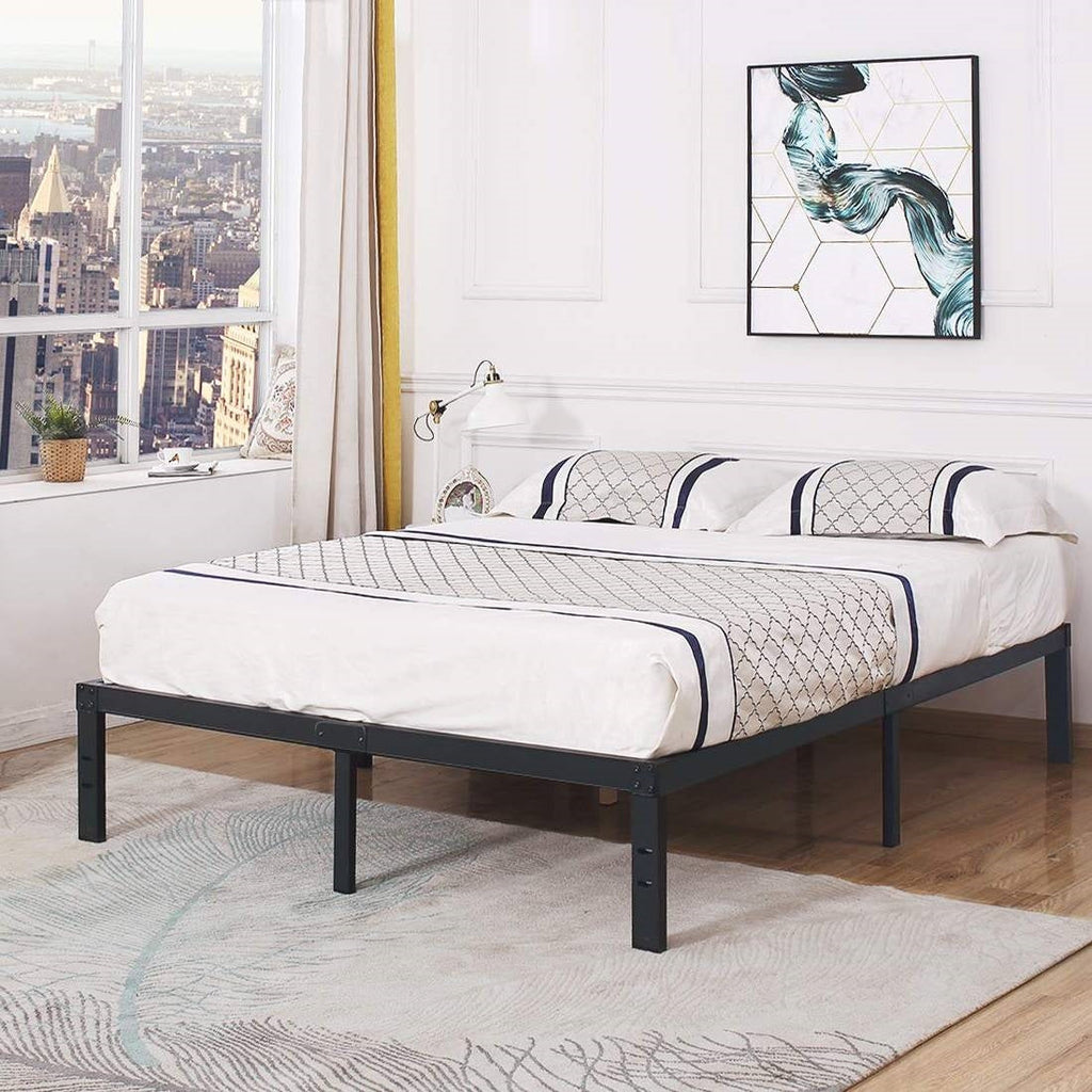Our Heavy Duty Steel Metal Platform Bed Frame with wide wooden slats has a 3,500 lbs max weight capacity. Upgraded Extra-strong wood slats provide stable and secure support for your queen size mattress. No box spring is needed. Easy to Assemble.