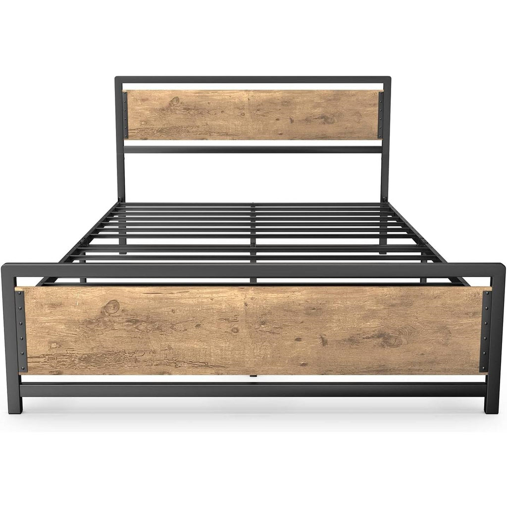 - Queen Modern Metal Wood Industrial Platform Bed Frame with Headboard Footboard
