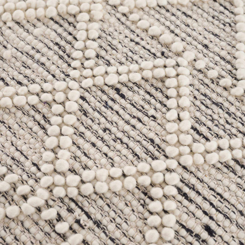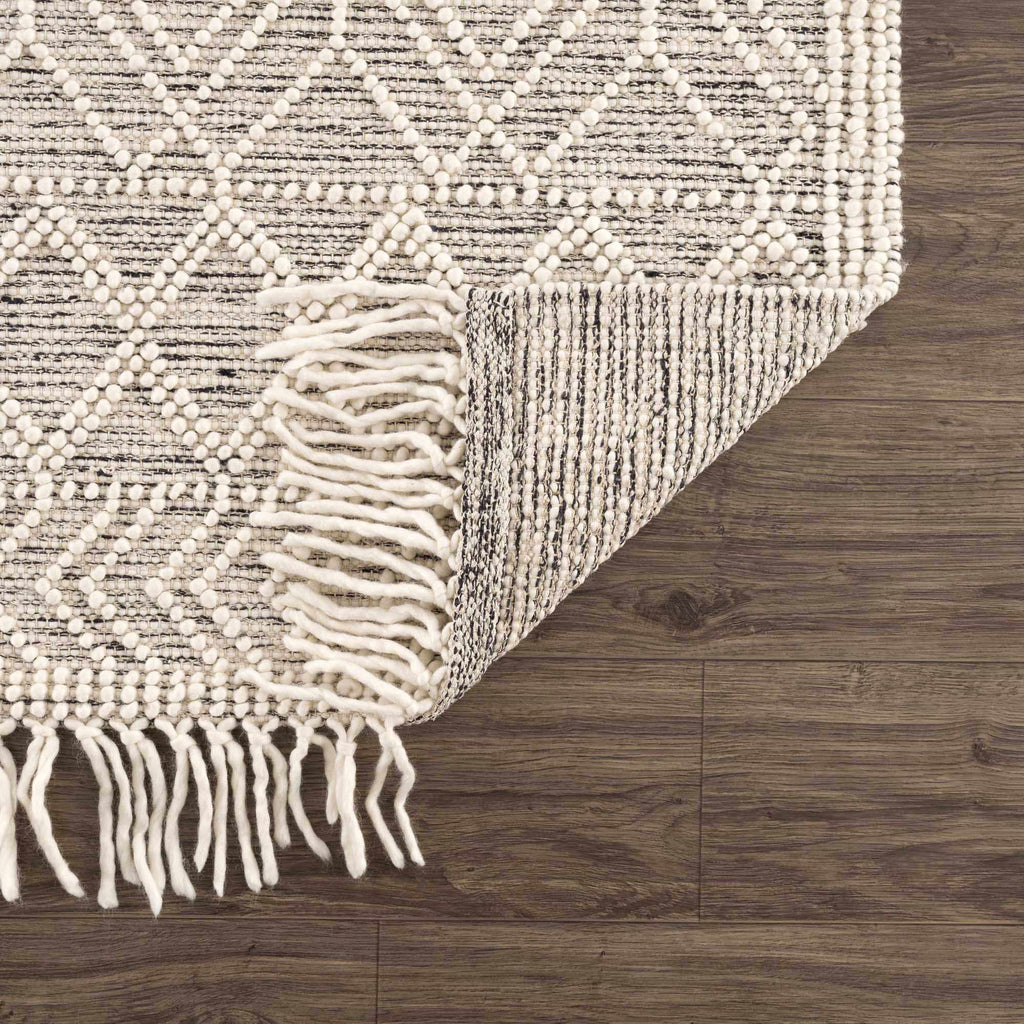 About: This majestic piece of decor is crafted from %40 wool, perfect for creating a cozy and inviting vibe. The classic farmhouse style ivory design with sophisticated black background and geometric patterns sets the tone for any room. And the tassels on each corner creates an extra touch of class.