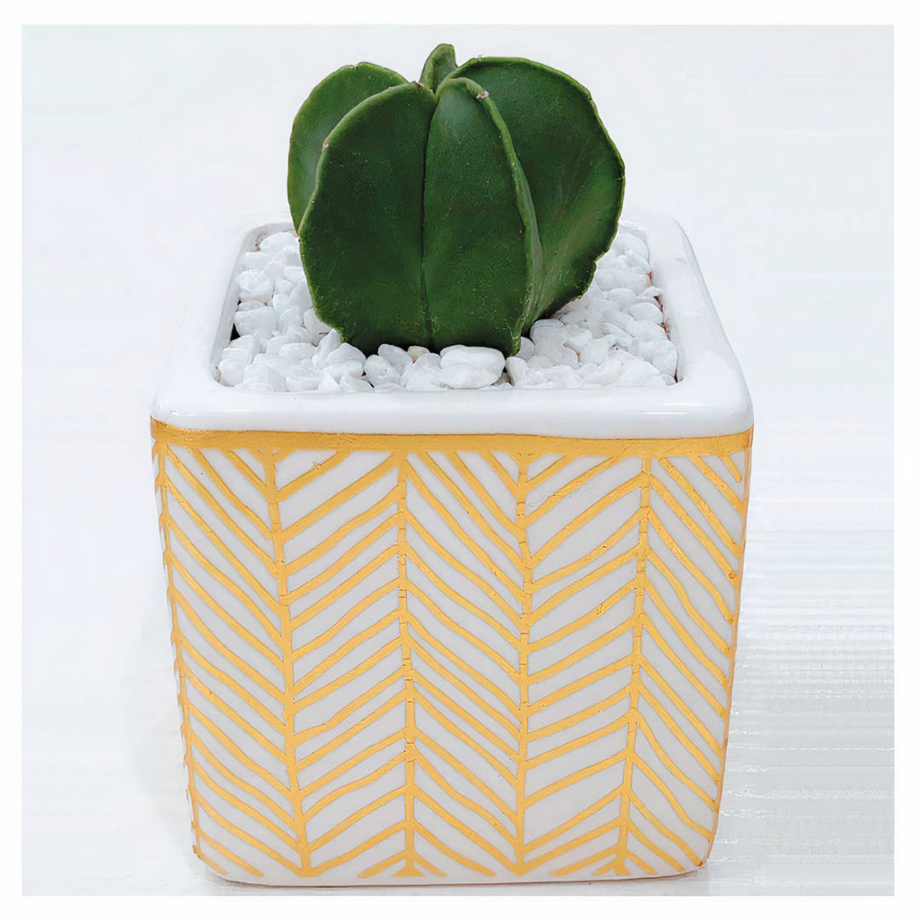 We're adding a gold flare to the all-white cube planters. This chic set of 2 planters with bamboo tray will be the perfect touch to a boring office desk. Just add a couple of healthy-looking succulents and voila!