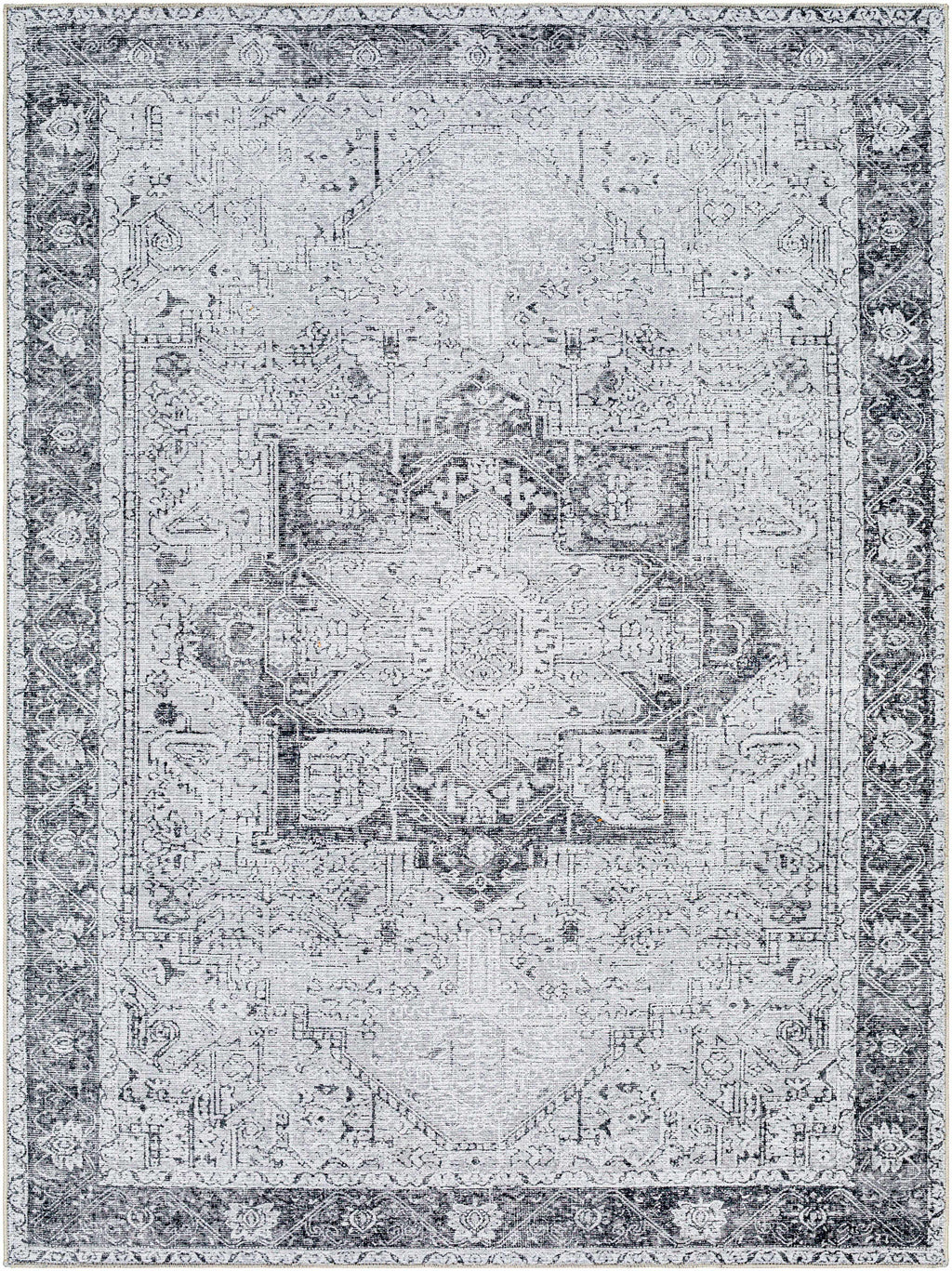 About: The Gray Rosman Washable Area Rug combines traditional vintage style with a distressed finish, creating a timeless and versatile addition to any space. Made from durable and washable materials, it is designed to withstand high-traffic areas while maintaining its charm. The neutral gray tones allow it to effortlessly blend into a variety of home decor styles, making it a perfect choice for every room.