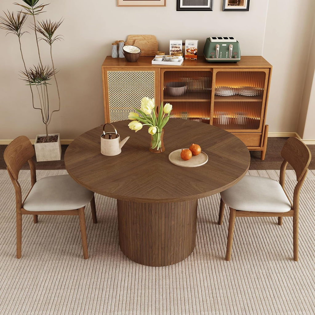 Elevate your dining space with a 47-inch round dining table that merges modern farmhouse charm with everyday practicality. This compact, stylish table seats up to four and fits neatly in kitchens or living rooms, making casual meals and gatherings effortless.