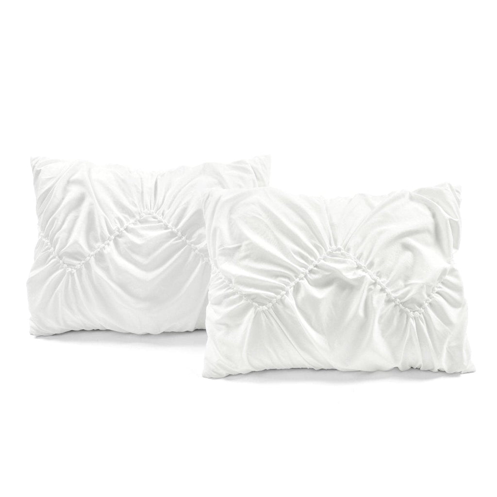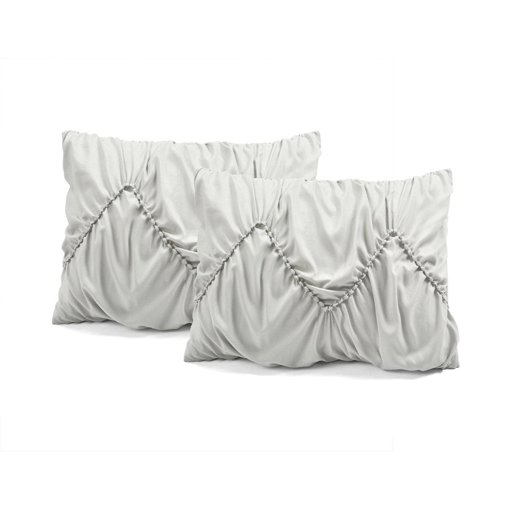 This Ruched Chevron Comforter Set is offered in two configurations. The Twin XL size includes one soft comforter and one matching sham. The Full/Queen and King sizes include the comforter and two matching pillow shams. It is available in your choice of bright white or light gray.