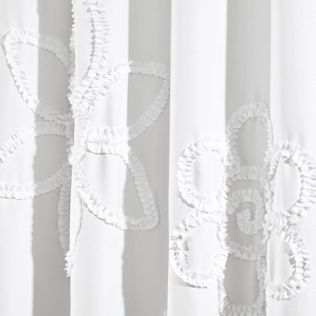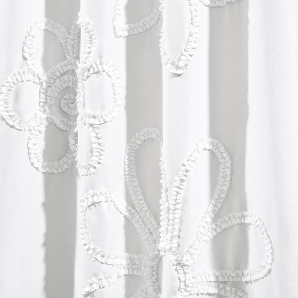 This semi-sheer Ruffle Flower Window Curtain Panel Set is unlined, allowing a flood of natural light into your home while still providing privacy from your neighbors.