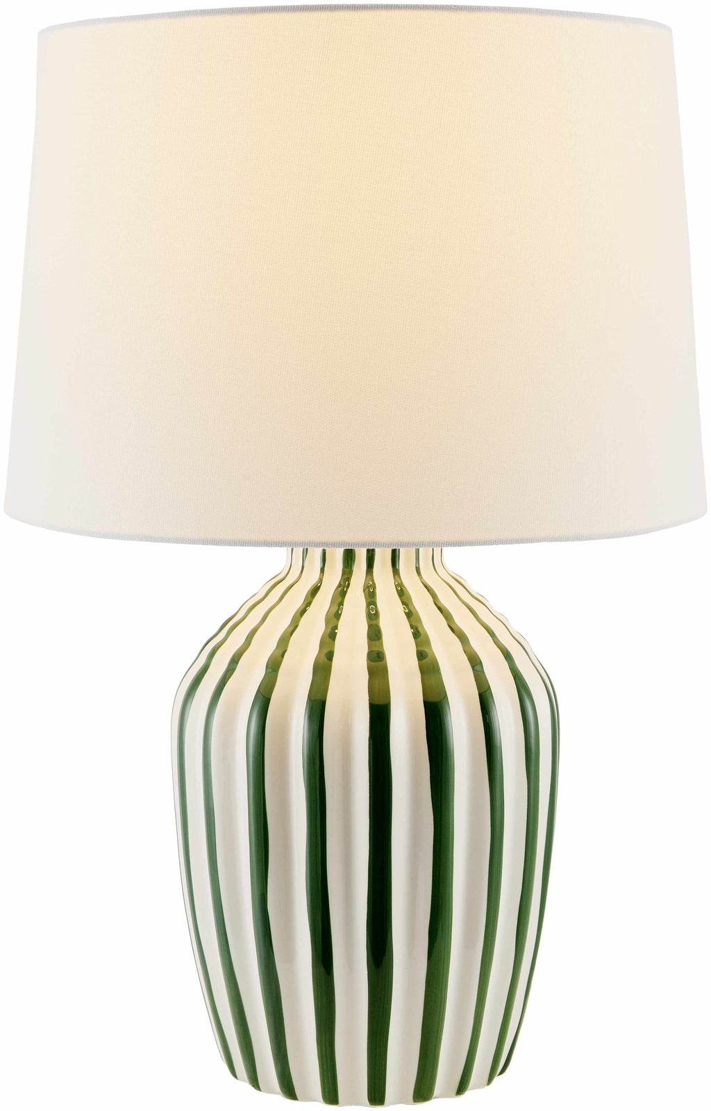 Material: Body: Ceramic / Shade (Outside): Linen / Shade (Inside): Polyester / Finial: Iron |
