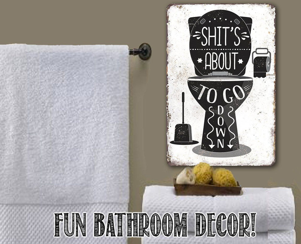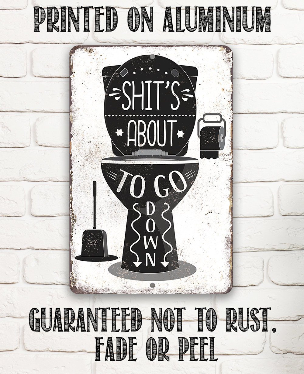 Tin - Metal Sign - Shit's About To Go Down - 8"x12" or 12"x18" Use Indoor/Outdoor - Bathroom Decor