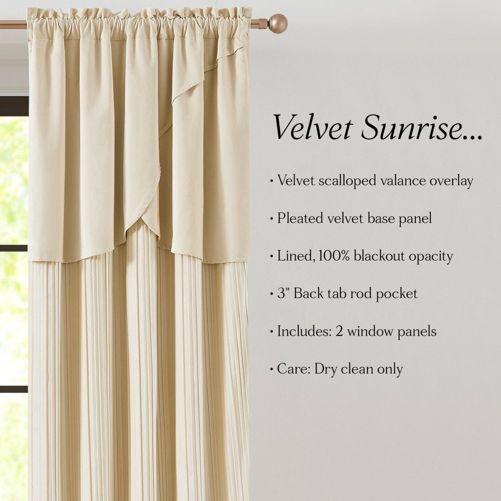 Bring bold artistry into your home with the Solar Drift Velvet Blackout Curtains. Designed with Chuks Collins’ signature scalloped detailing layered over delicate pleats, these luxury curtains create a striking valance-like effect that adds movement and depth to your space. Crafted from soft velvet, they combine high style with high function. The 100% blackout lining ensures maximum privacy, energy efficiency, total light blocking, noise reduction, and improved temperature control. Featuring corner weights for a perfect drape and polished finish. Sold as a set of 2 panels, each measuring 52" W x 84" L. Easy to install with a 3" rod pocket, to slide onto a curtain rod or by using clip rings (not included). Dry clean only for best results.