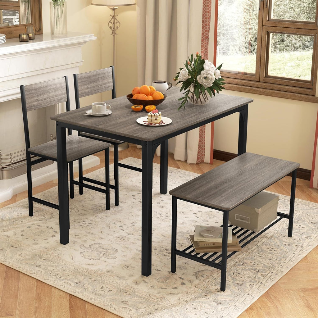 - Built-in storage shelves: Benches include shelves to store essentials like placemats, napkins, or small kitchen items, keeping your dining area organized.