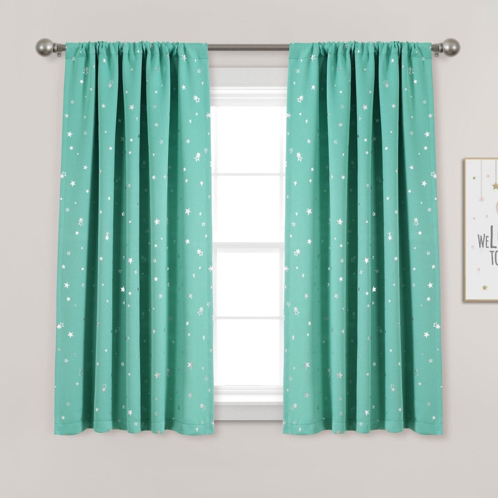 Enhance your decor with this cheerful Star Blackout Window Curtain Set. The cute stars make any child's room sparkle.