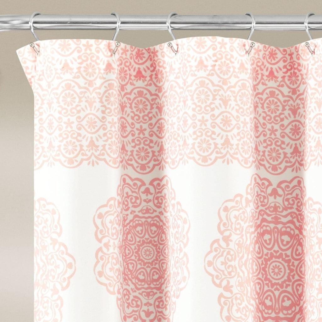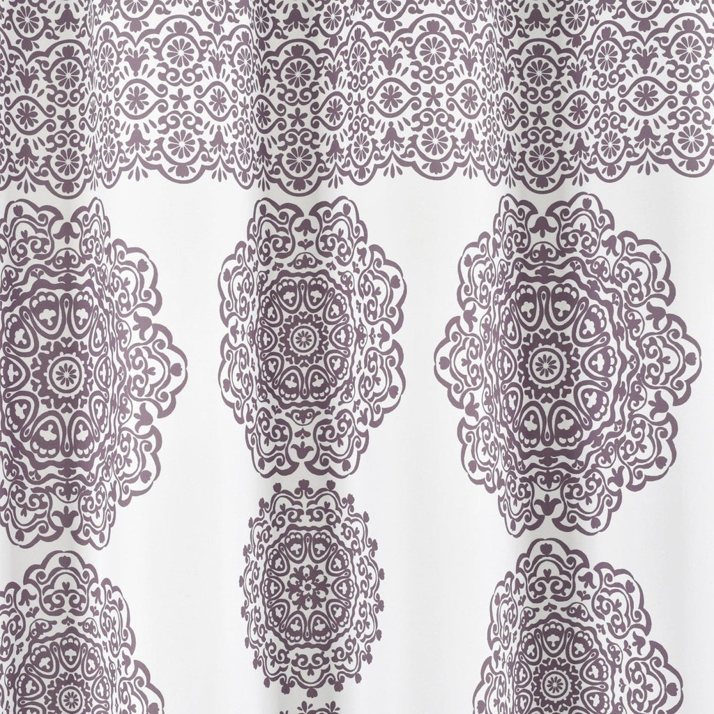 This Stripe Medallion Shower Curtain will instantly enhance the look of any bathroom. It features a stunning cascade of alternating long and short medallion motifs printed on micro fiber in your choice of seven great color options.