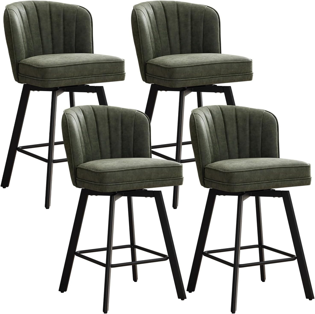Elevate your dining space with 26-inch counter-height bar stools that blend modern design, comfort, and reliability. This set of 4 showcases a shell-inspired back, green faux leather upholstery, and a robust metal frame—the perfect pairing for kitchen islands, counters, bars, or cafes.