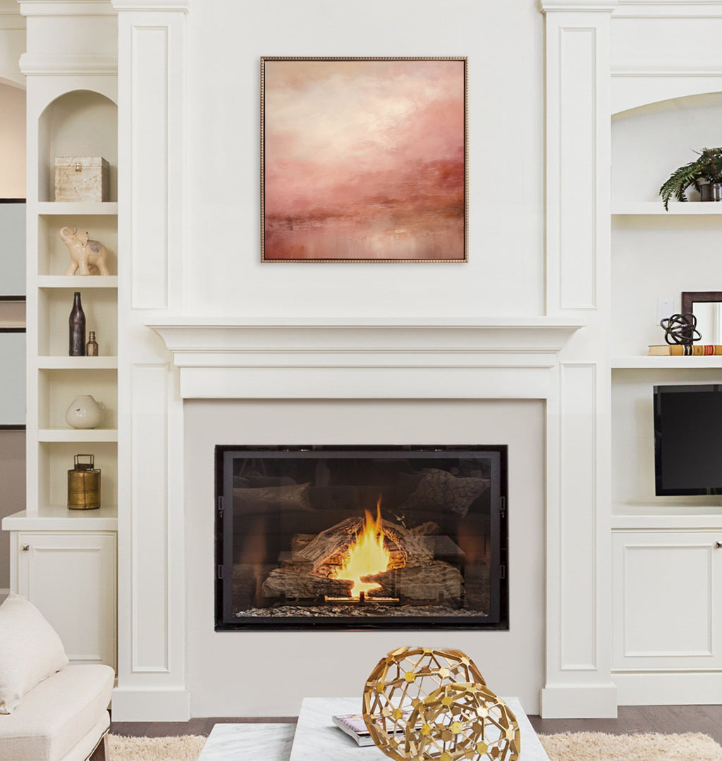 Featuring sun-kissed pink and peach hues, this ombre abstract canvas by The Creative Bunch Studio offers a warm and inviting touch to your decor. Printed and framed in the USA in Waunakee, Wisconsin, this vintage beaded framed floating canvas art will be a pleasure to look at every day in your living room, bedroom, office, or any room in the home. This art also makes an excellent gift for birthdays, holidays, or house-warming parties. Printed on gallery-wrapped canvas and framed with a lightweight polystyrene frame, this wall art is easy to display on the wall.