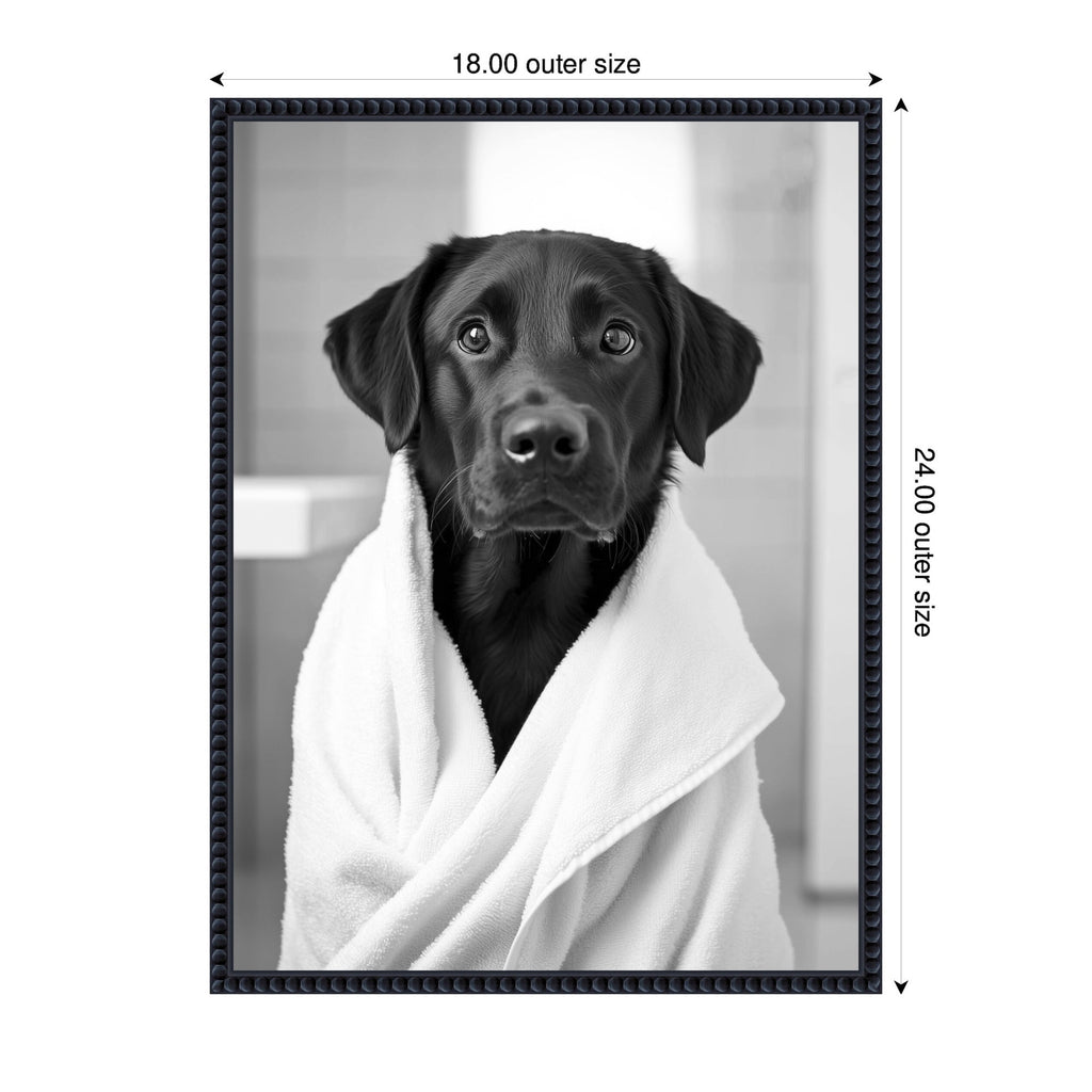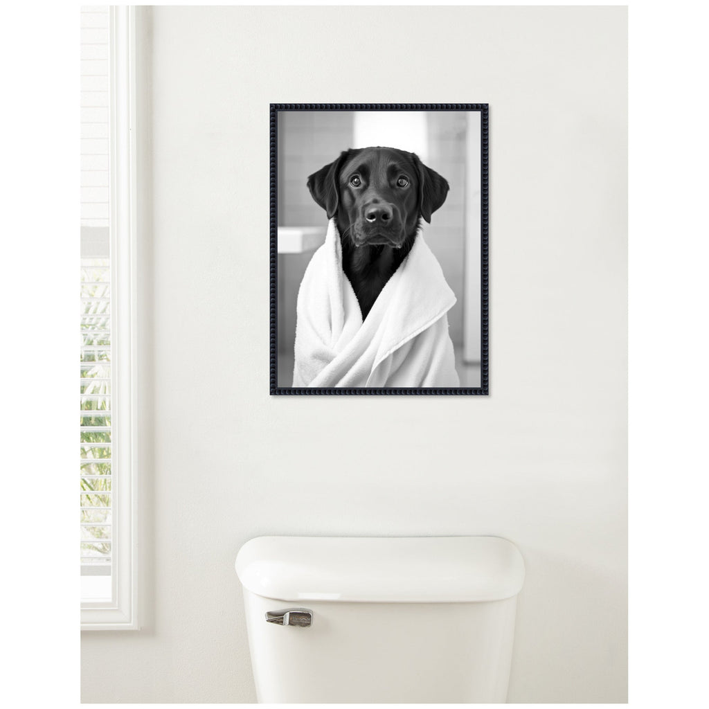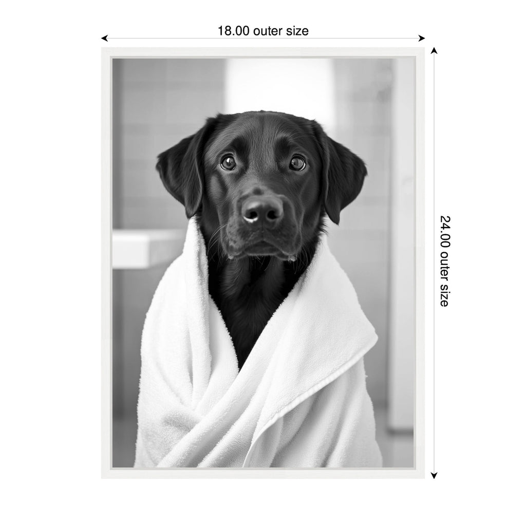 - Print "Black Lab Bathroom Art Towel Robe Black and White" ©2025 The Creative Bunch Studio