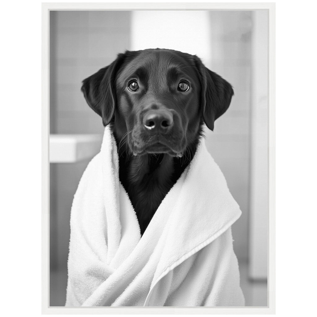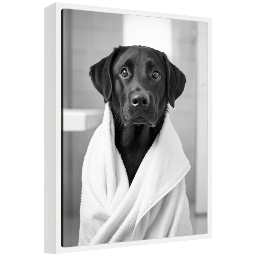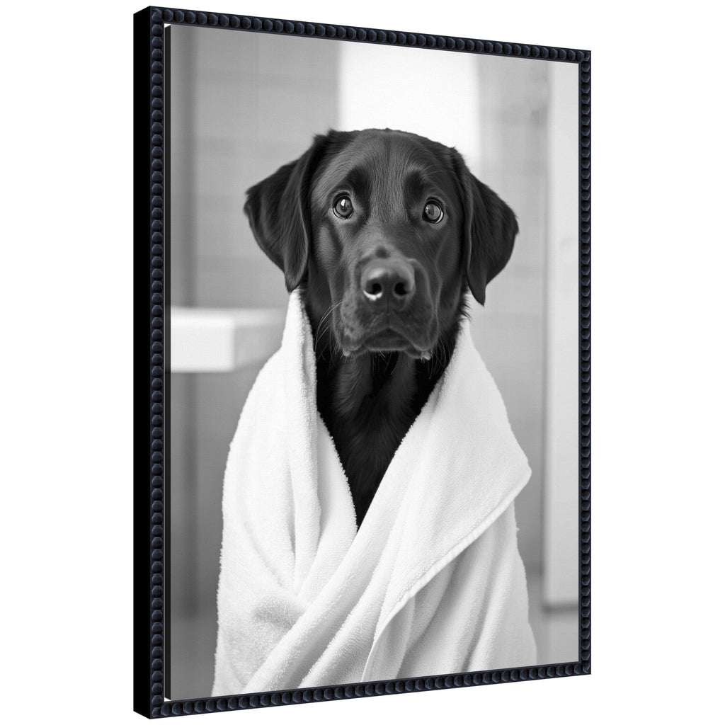 - Print "Black Lab Bathroom Art Towel Robe Black and White" ©2025 The Creative Bunch Studio
