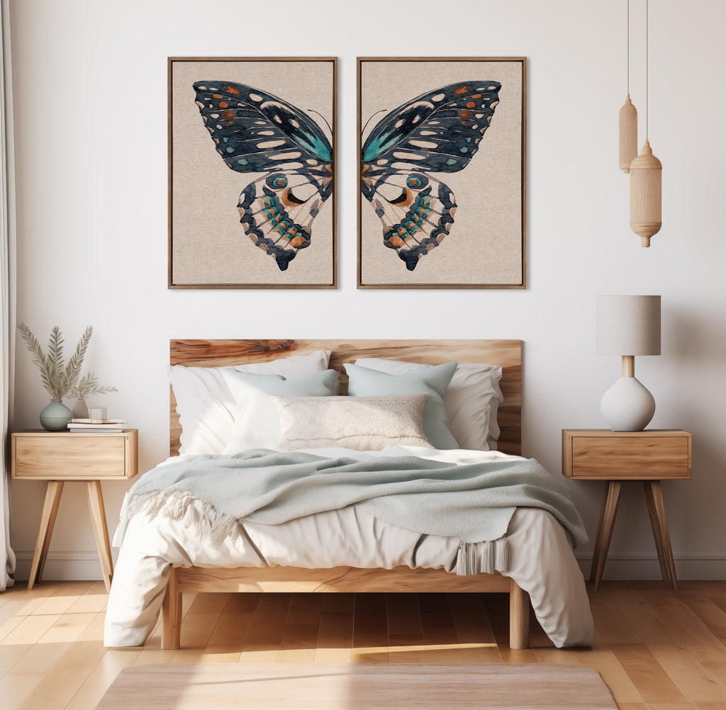 Embrace the flowing butterfly wings in this linen framed canvas art set by The Creative Bunch Studio. Printed and framed in the USA in Waunakee, Wisconsin, this framed floating canvas art set will be a pleasure to look at every day in your living room, bedroom, office, or any room in the home. These art set also makes an excellent gift for birthdays, holidays, or house-warming parties. Printed on gallery-wrapped canvas and framed with a lightweight polystyrene frame, this wall art is easy to display on the wall.