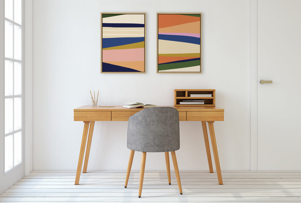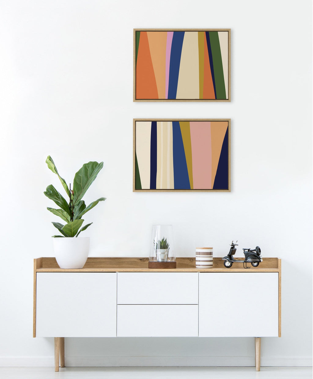 Add some soft colors to your space with this boho two-piece canvas art set. Printed and framed in the USA in Waunakee, Wisconsin, this framed floating canvas art set will be a pleasure to look at every day in your living room, bedroom, office, or any room in the home. This curated set also makes an excellent gift for birthdays, holidays, or house-warming parties. Printed on gallery-wrapped canvas and framed with a lightweight polystyrene frame, this wall art set is easy to display on the wall.