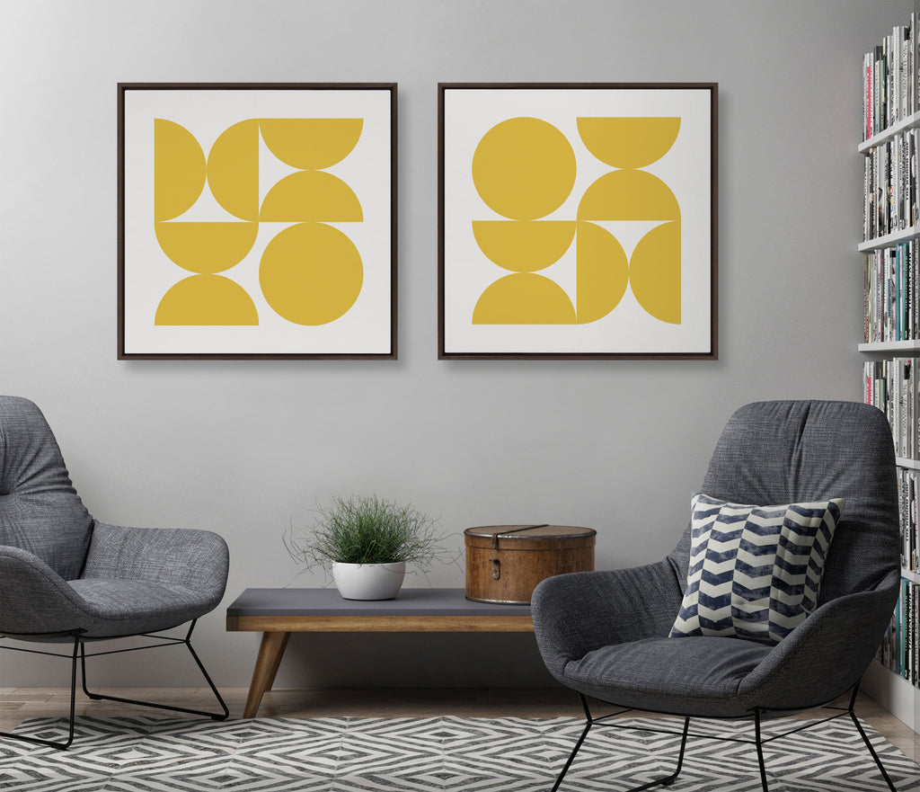 Add a touch of mid-century modern to your empty wall space with this bright and bold yellow piece. Printed and framed in the USA in Waunakee, Wisconsin, this framed floating canvas art will be a pleasure to look at every day in your living room, bedroom, office, or any room in the home. This art print also makes an excellent gift for birthdays, holidays, or housewarming parties. Printed on gallery-wrapped canvas and framed with a lightweight polystyrene frame, this wall art is easy to display on the wall.