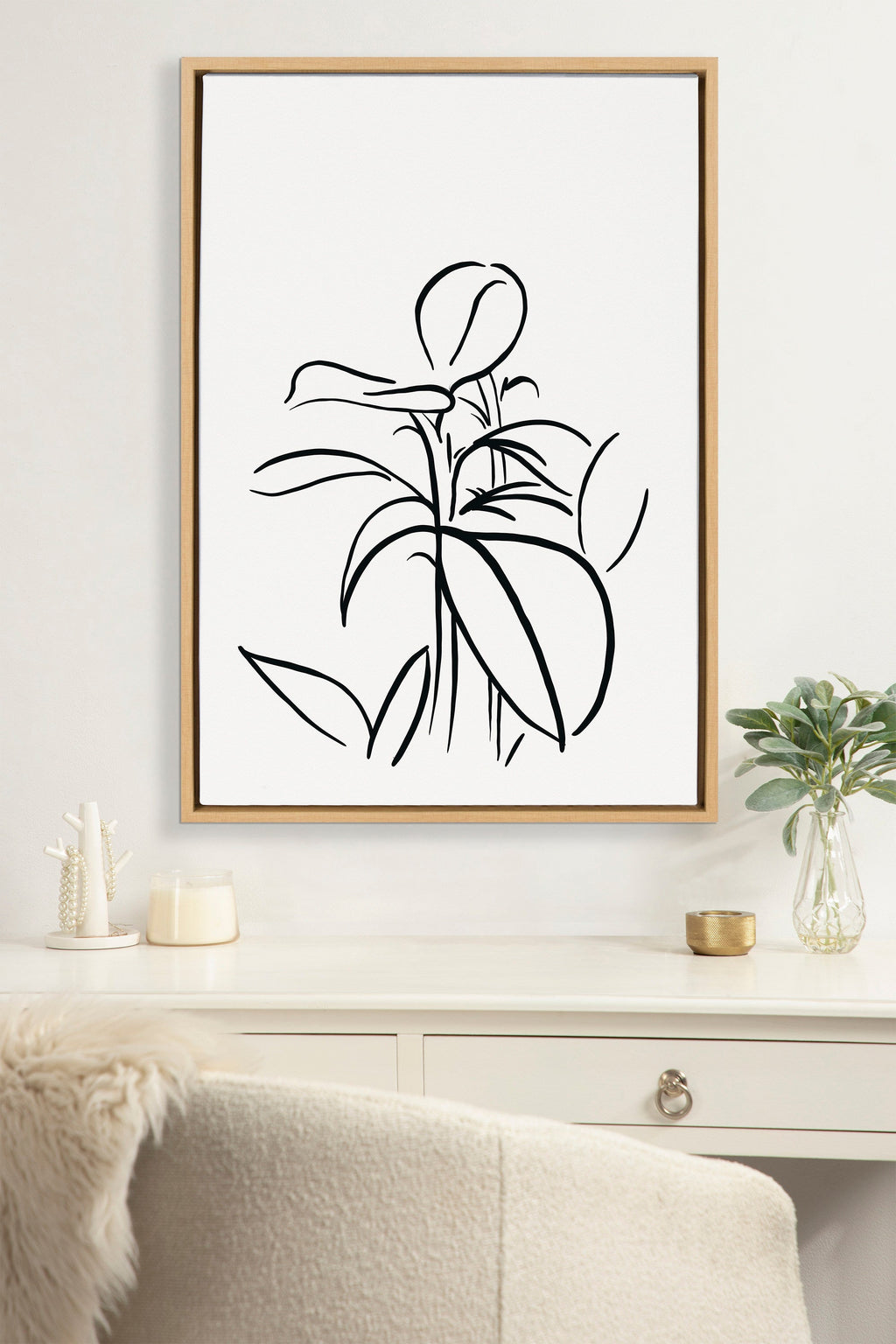 This abstract depiction of fresh botanicals brings unique modern minimalism to any wall of your home. Printed and framed in the USA in Waunakee, Wisconsin, this framed floating canvas art will be a pleasure to look at every day in your living room, bedroom, office, or any room in the home. This art print also makes an excellent gift for birthdays, holidays, or house-warming parties. Printed on gallery-wrapped canvas and framed with a lightweight polystyrene frame, this wall art has two hangers already attached to the MDF back for easy wall display.