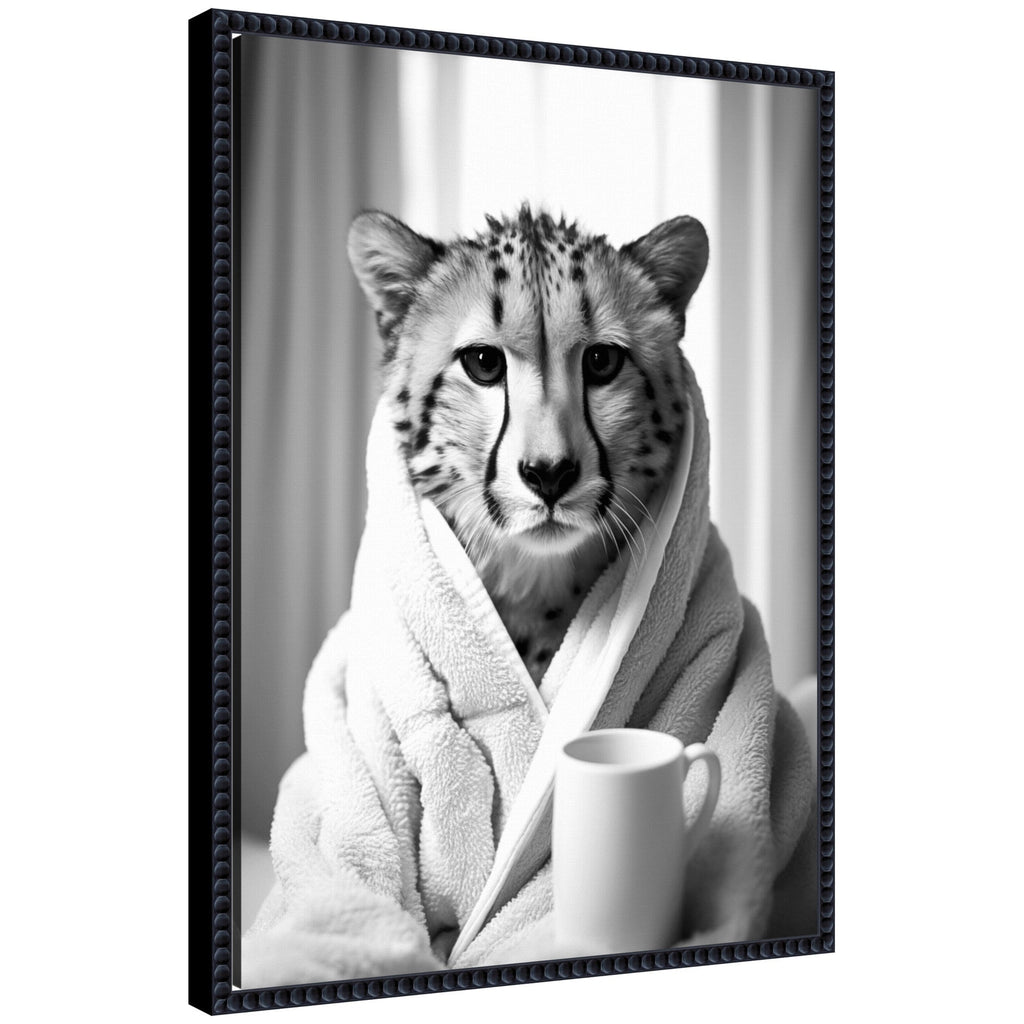 - Print "Cheetah Bathroom Art Towel Robe Black and White" ©2025 The Creative Bunch Studio