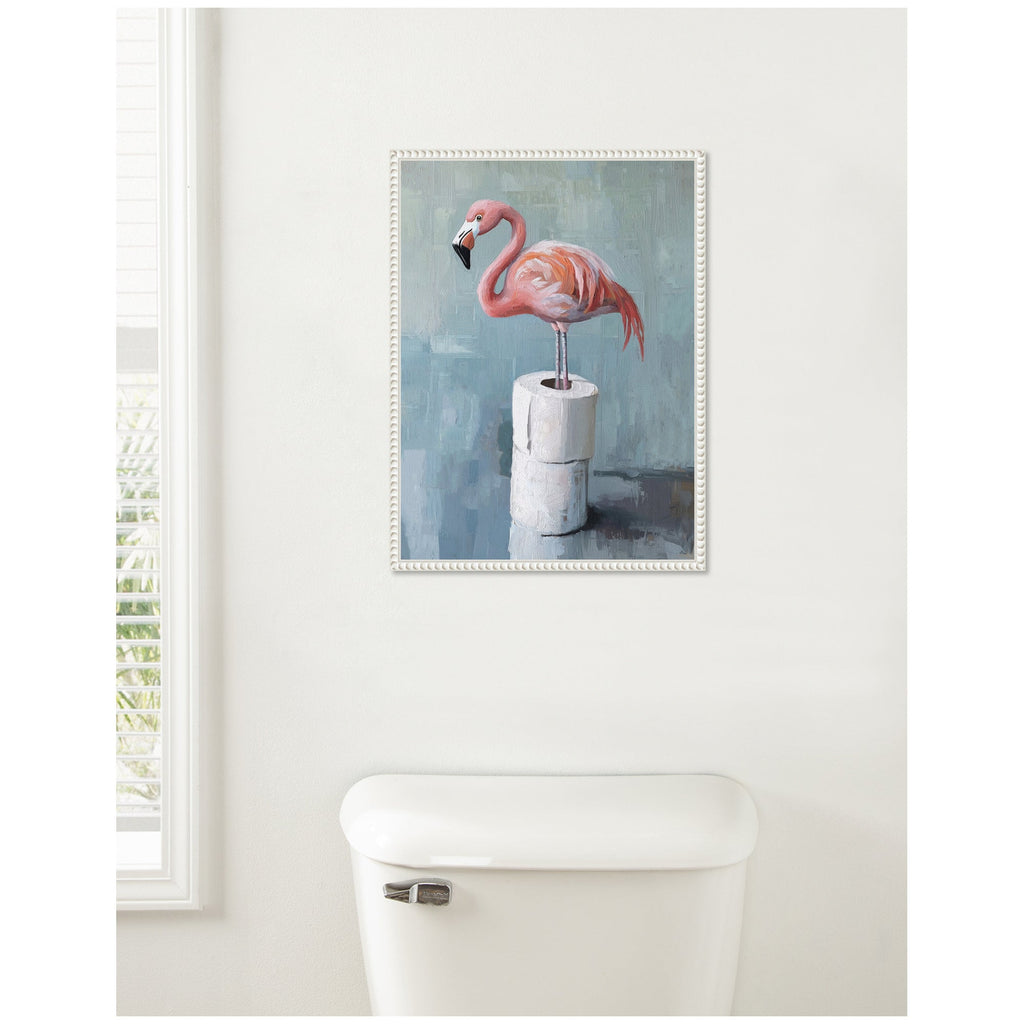 - Print "Flamingo Standing with Toilet Paper Rolls Bathroom Art" ©2025 The Creative Bunch Studio