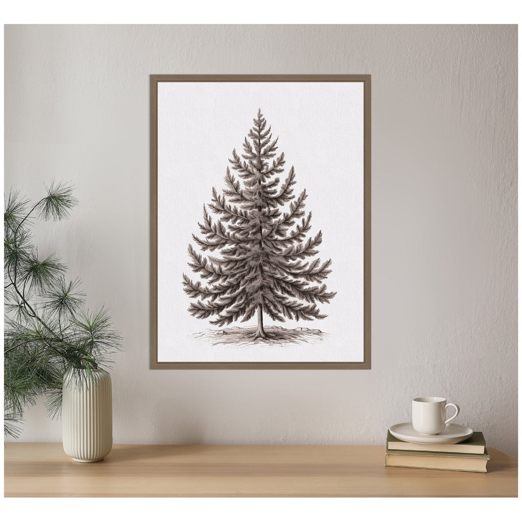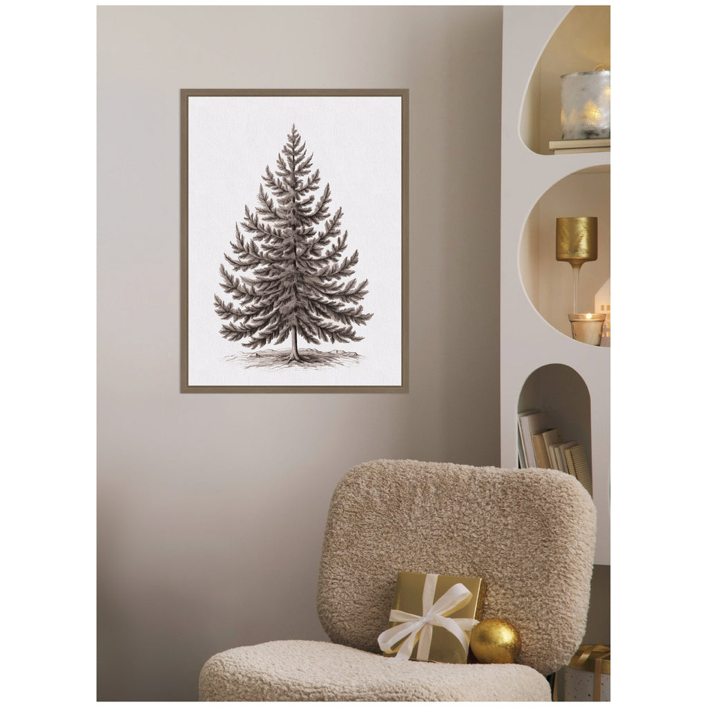 Elevate your space through thoughtfully curated style with this stunning piece designed by independent artist The Creative Bunch Studio and beautifully framed by hand in Madison, WI. The image is giclee printed using fade-resistant inks, ensuring every detail comes to life in rich, lasting color. Set in designer moulding, its a Vintage accent crafted to make a statement. Visual Story: The artwork depicts a beautifully detailed monochrome sketch of a majestic evergreen tree. The intricate arrangement of branches and foliage captures a serene, natural essence. Its rustic style evokes a tranquil, timeless atmosphere.