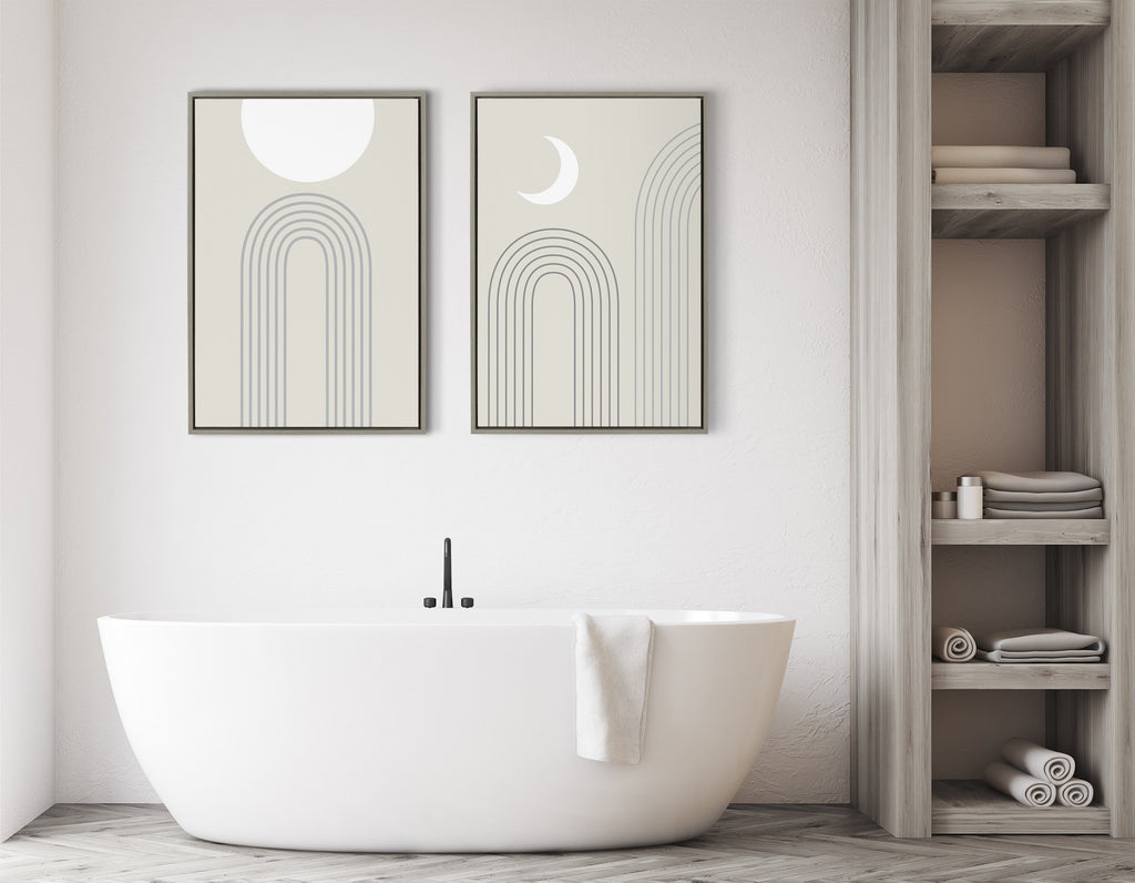 Showcase your modern abstract style with this art print that evokes the horizon over the mountains in a minimalist fashion. Printed and framed in the USA in Waunakee, Wisconsin, this framed floating canvas art will be a pleasure to look at every day in your living room, bedroom, office, or any room in the home. This art print also makes an excellent gift for birthdays, holidays, or house-warming parties. Printed on gallery-wrapped canvas and framed with a lightweight polystyrene frame, this wall art has two hangers already attached to the MDF back for easy wall display.