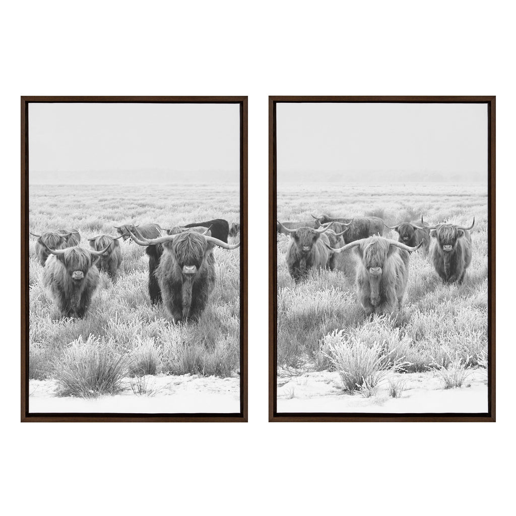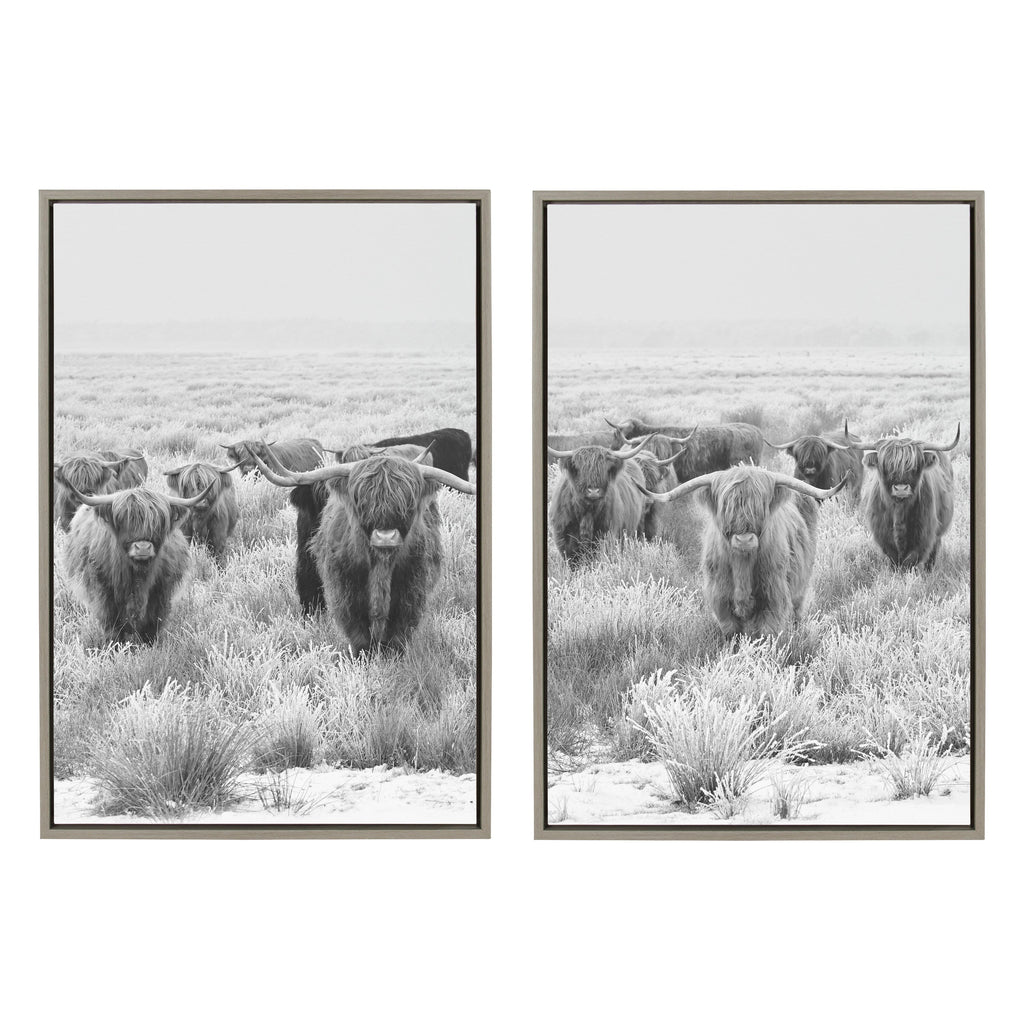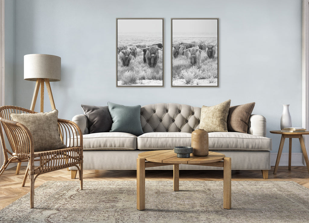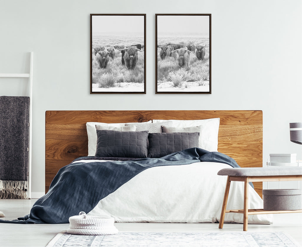 This rustic highland cow art is fantastic for showcasing your casual farmhouse style. Printed and framed in the USA in Waunakee, Wisconsin, this framed floating canvas art will be a pleasure to look at every day in your living room, bedroom, office, or any room in the home. This art print also makes an excellent gift for birthdays, holidays, or housewarming parties. Printed on gallery-wrapped canvas and framed with a lightweight polystyrene frame, this wall art has two hangers already attached to the MDF back for easy wall display.