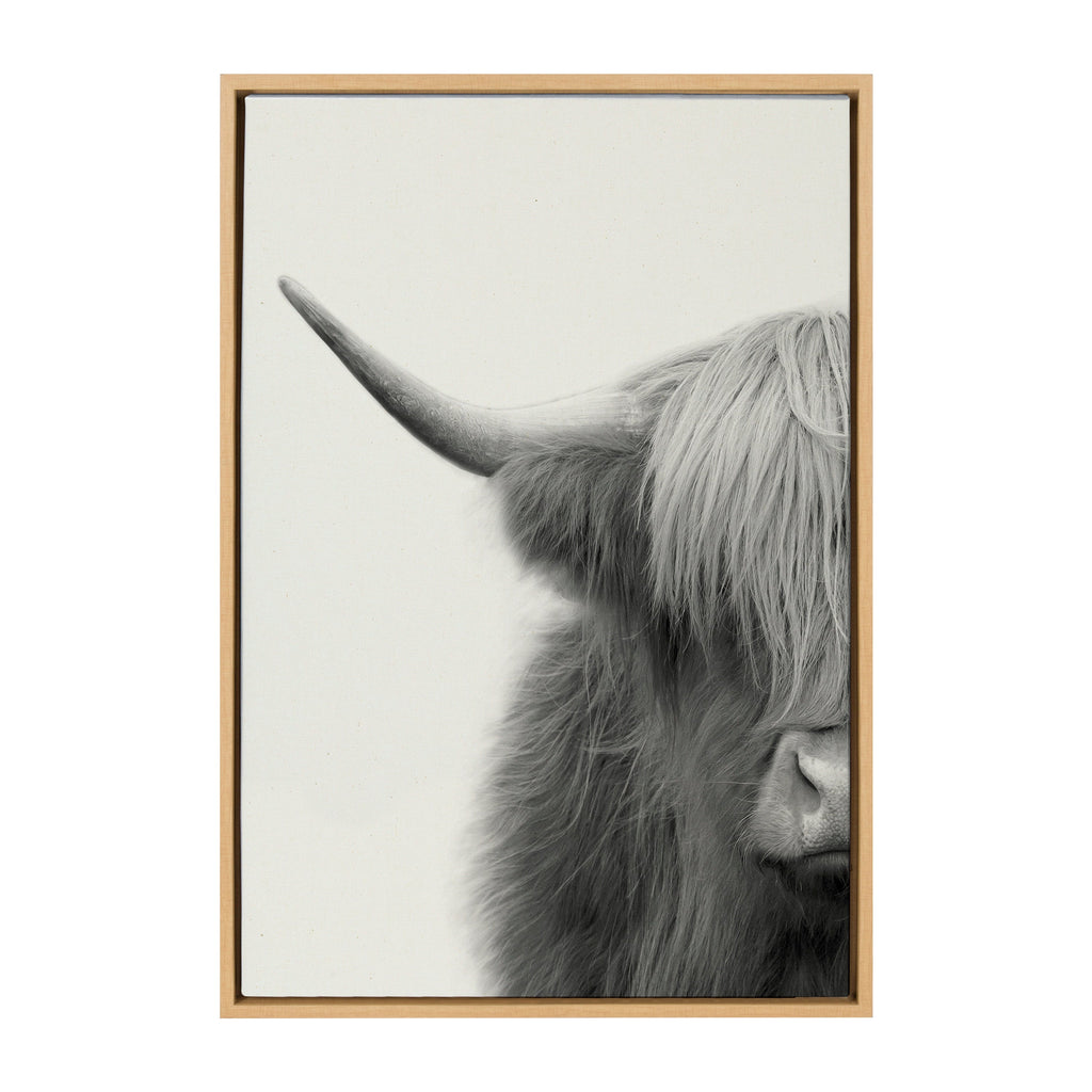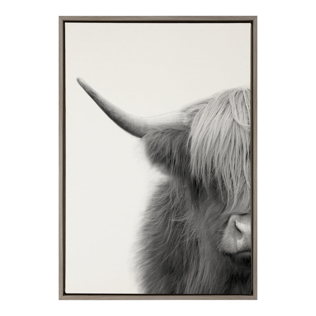 This cow art is the perfect farmhouse accent piece to introduce to your home. Printed and framed in the USA in Waunakee, Wisconsin, this framed floating canvas art will be a pleasure to look at every day in your living room, bedroom, office, or any room in the home. This art print also makes an excellent gift for birthdays, holidays, or house-warming parties. Printed on gallery-wrapped canvas and framed with a lightweight polystyrene frame, this wall art is easy to display on the wall.