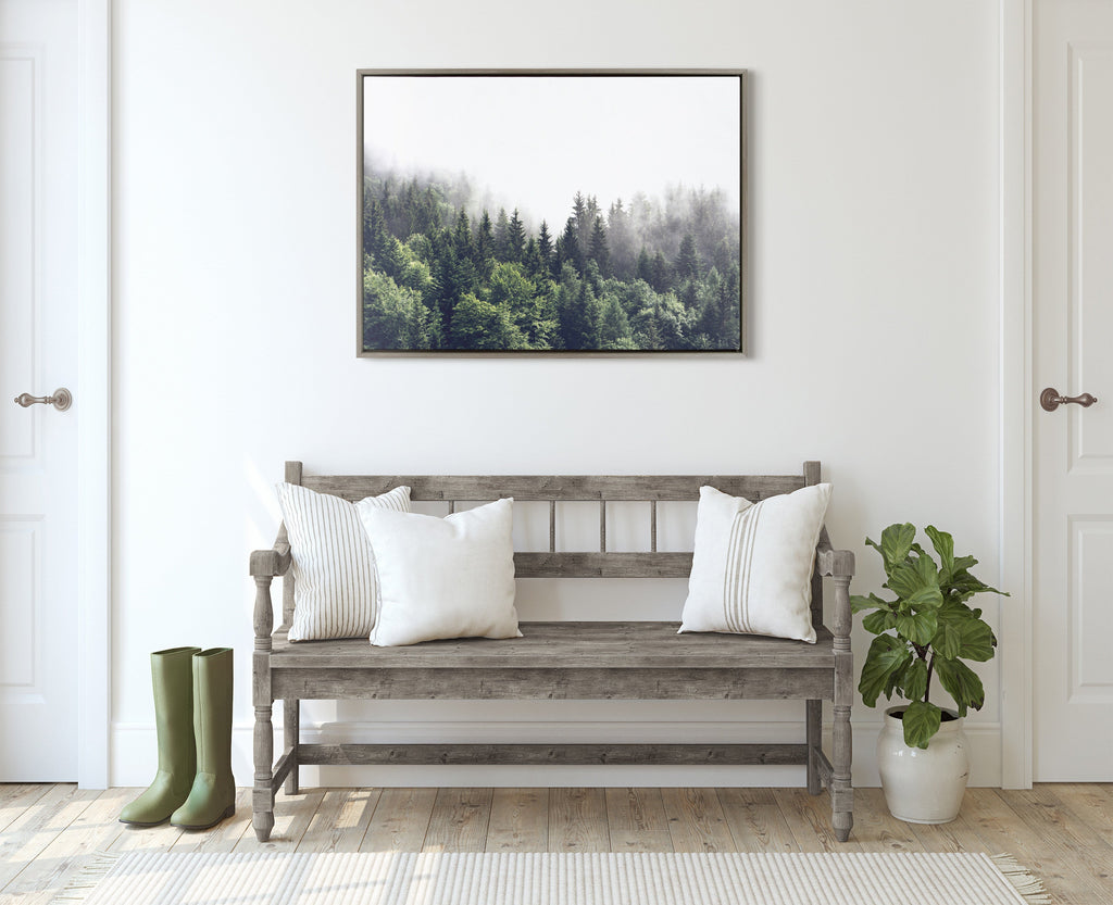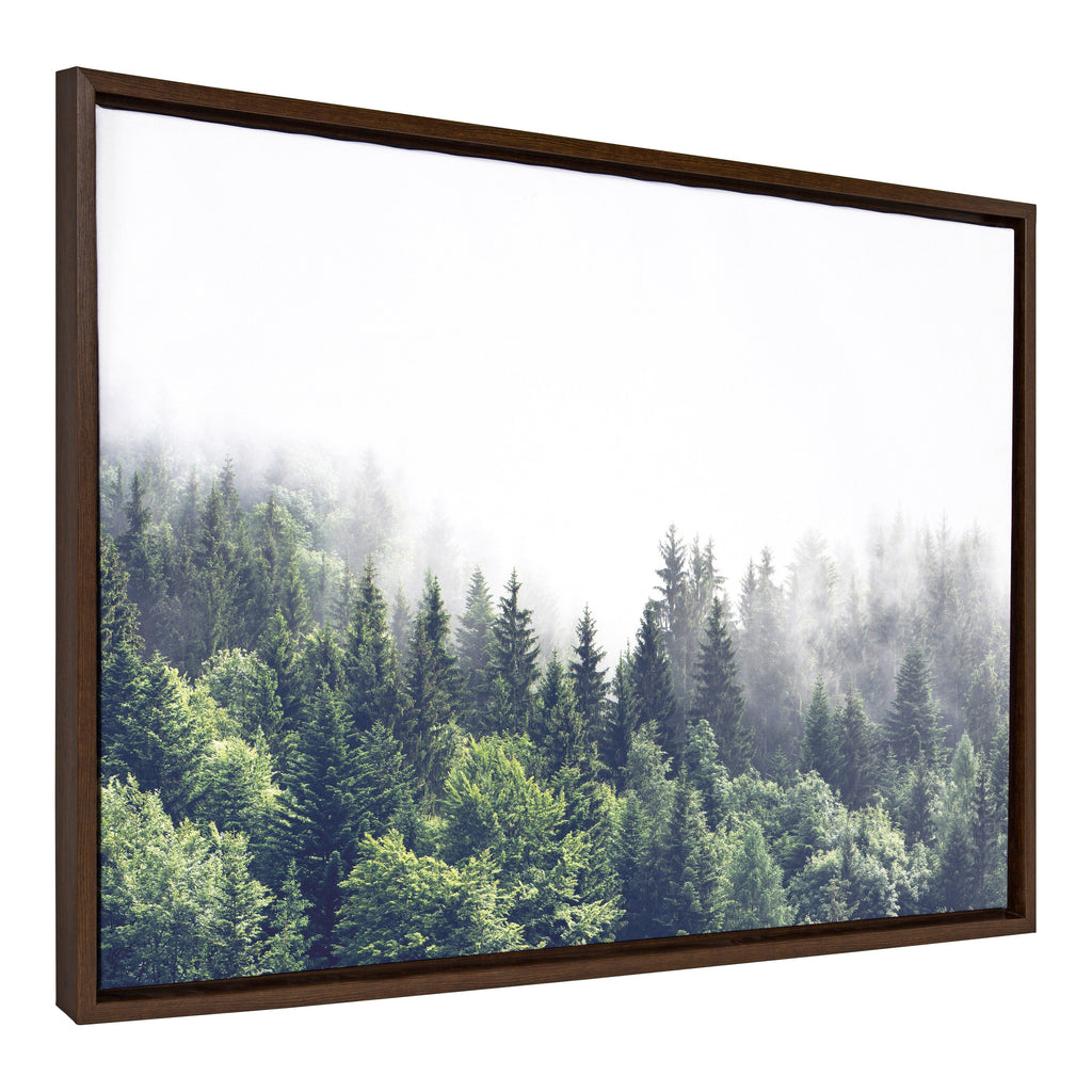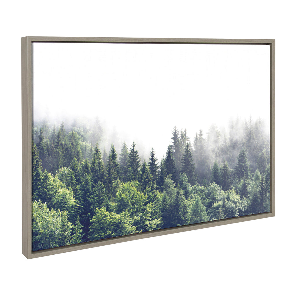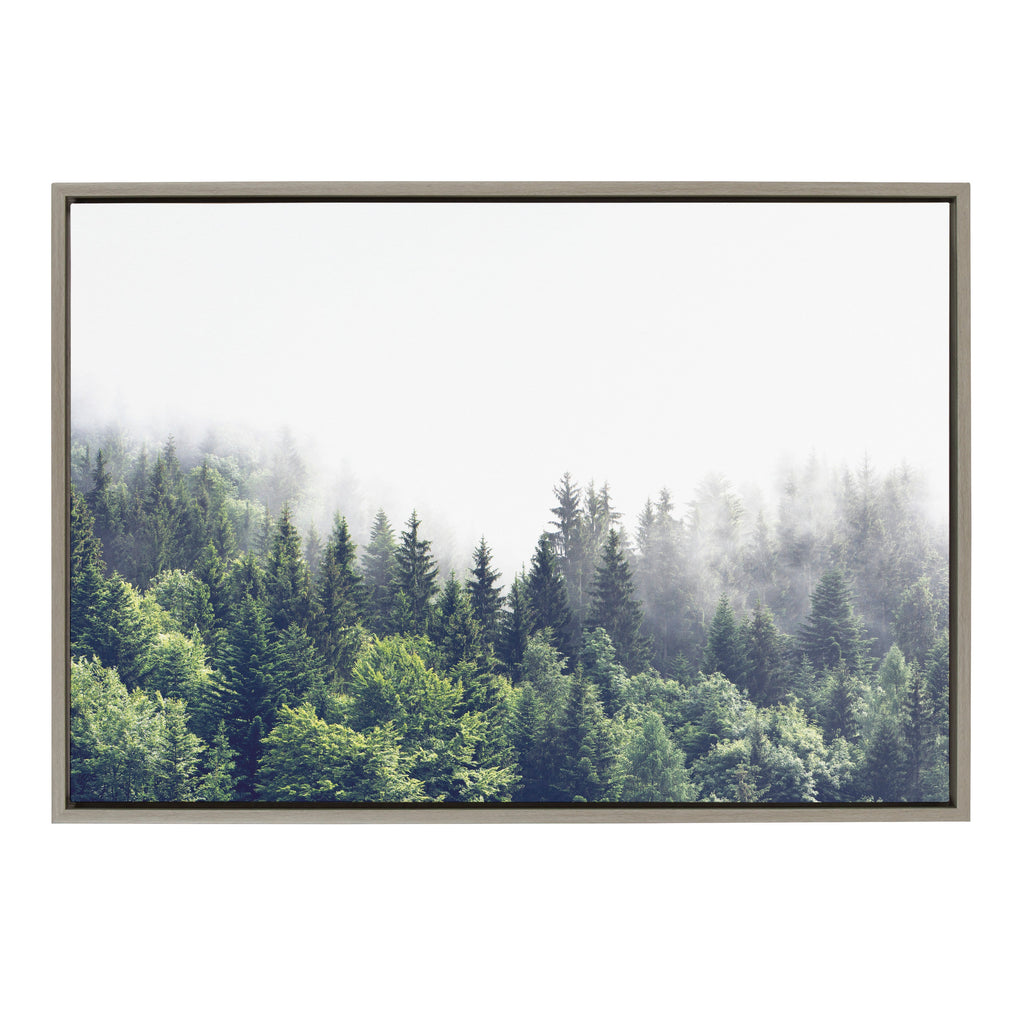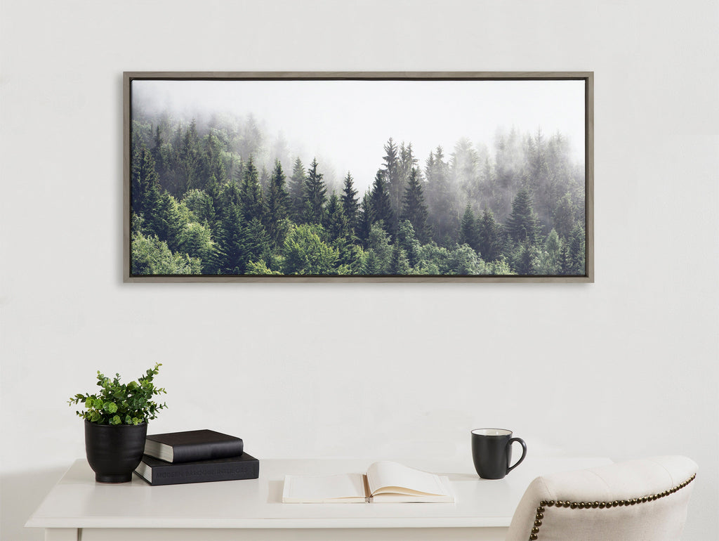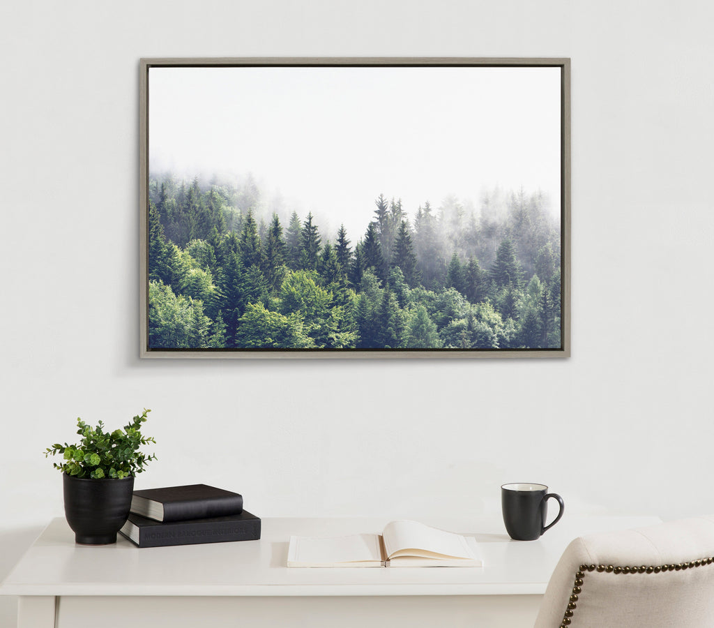 Transport yourself and your decor into the foggy forest trees with this lovely artwork by The Creative Bunch Studio. Printed and framed in the USA in Waunakee, Wisconsin, this framed floating canvas art will be a pleasure to look at every day in your living room, bedroom, office, or any room in the home. This art print also makes an excellent gift for birthdays, holidays, or house-warming parties. Printed on gallery-wrapped canvas and framed with a lightweight polystyrene frame, this wall art is easy to display on the wall.