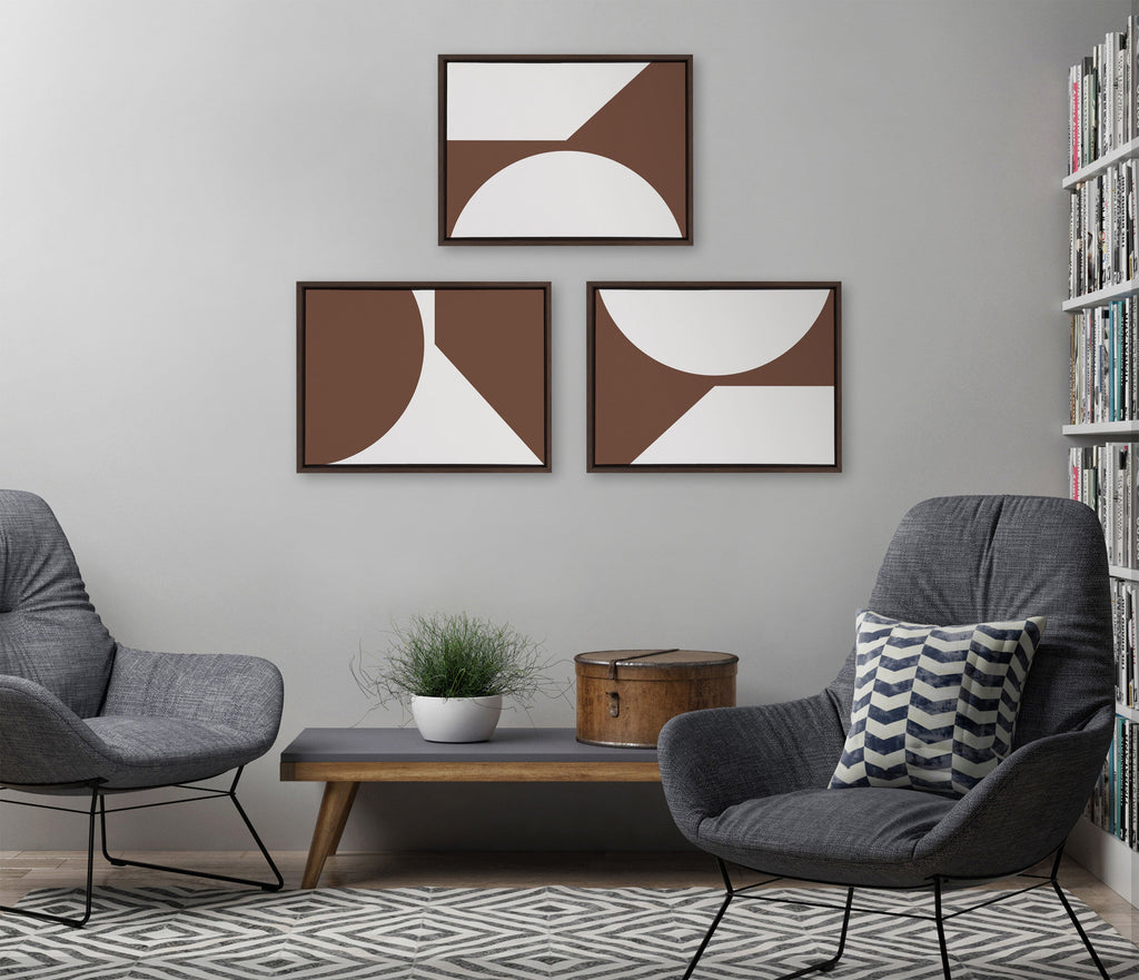 This contemporary, minimalist abstract art set brings subtle sophistication to any space of your home. Printed and framed in the USA in Waunakee, Wisconsin, this framed floating canvas art will be a pleasure to look at every day in your living room, bedroom, office, or any room in the home. This art print also makes an excellent gift for birthdays, holidays, or house-warming parties. Printed on gallery-wrapped canvas and framed with a lightweight polystyrene frame, this wall art is easy to display on the wall.