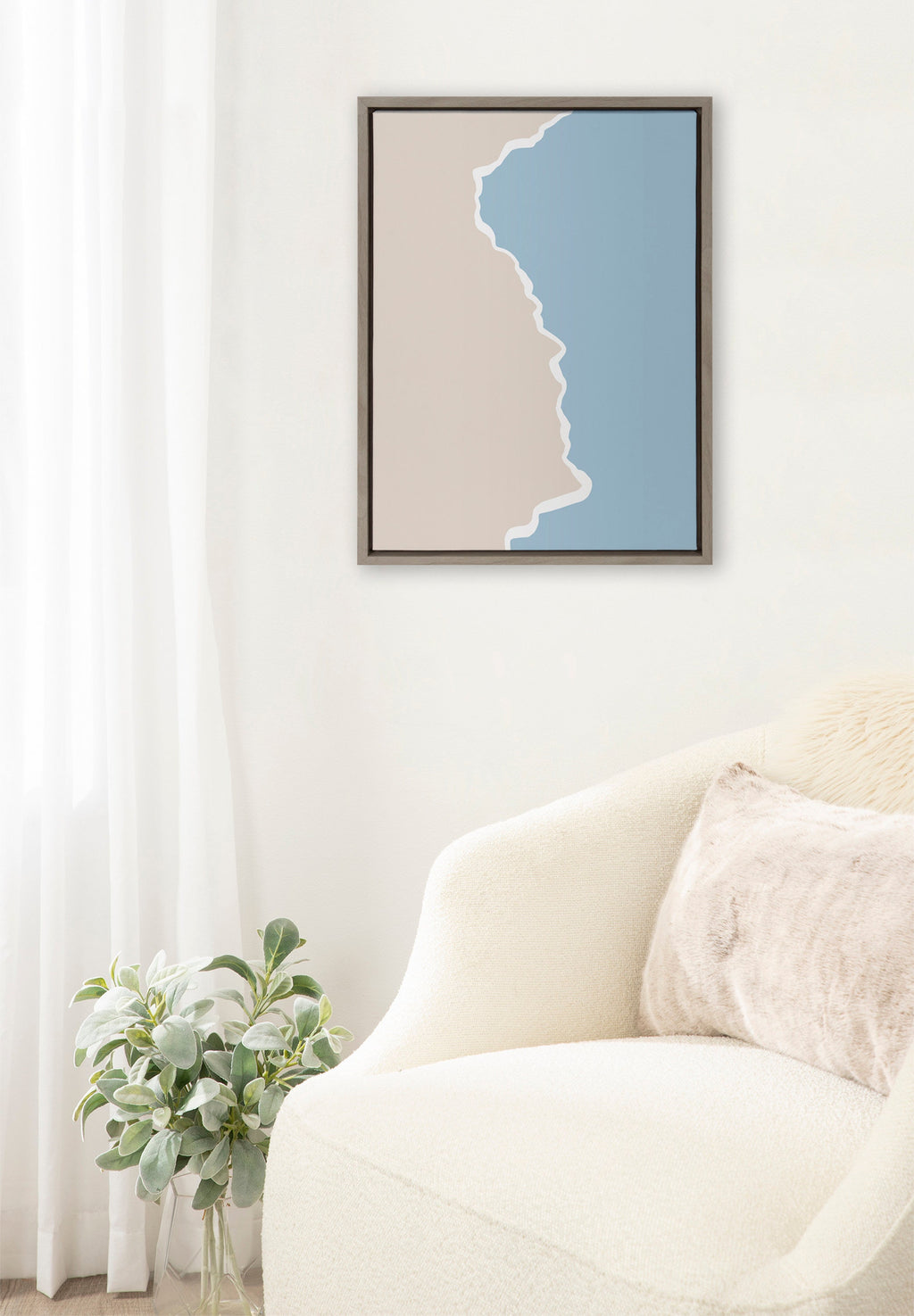 Add a contemporary touch to your space with this abstract ocean shore piece. Printed and framed in the USA in Waunakee, Wisconsin, this framed floating canvas art will be a pleasure to look at every day in your living room, bedroom, office, or any room in the home. This art print also makes an excellent gift for birthdays, holidays, or house-warming parties. Printed on gallery-wrapped canvas and framed with a lightweight polystyrene frame, this wall art is easy to display on the wall.