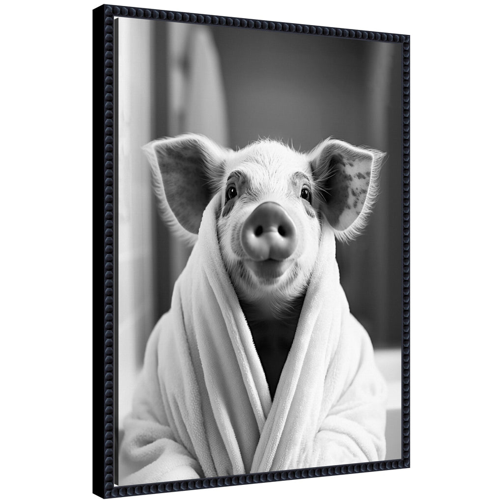 - Print "Pig Bathroom Art Towel Robe Black and White" ©2025 The Creative Bunch Studio