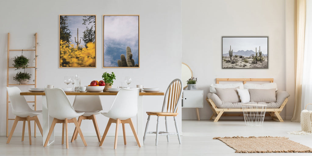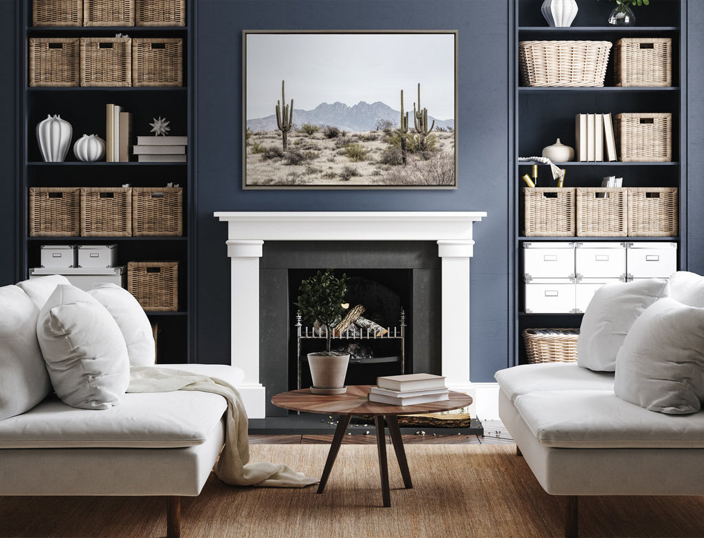 Bring the Southwest into your home with this beautiful print of the dry desert landscape and pretty blue sky. Printed and framed in the USA in Waunakee, Wisconsin, this framed floating canvas art will be a pleasure to look at every day in your living room, bedroom, office, or any room in the home. This art print also makes an excellent gift for birthdays, holidays, or house-warming parties. Printed on gallery-wrapped canvas and framed with a lightweight polystyrene frame, this wall art is easy to display on the wall.