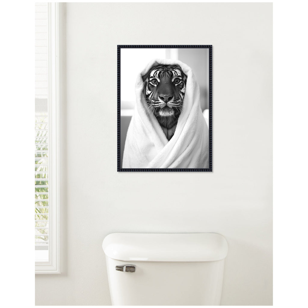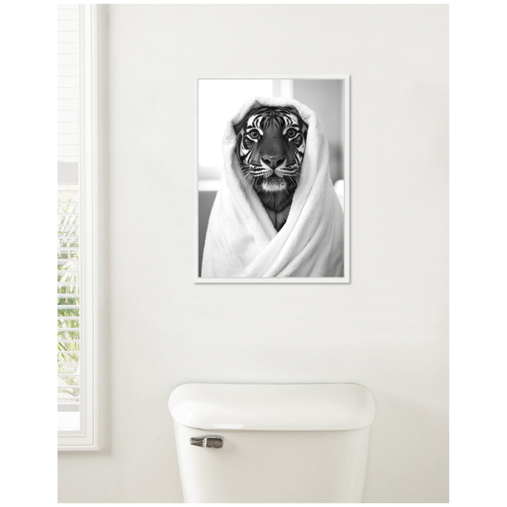 - Print "Tiger Bathroom Art Towel Robe Black and White" ©2025 The Creative Bunch Studio
