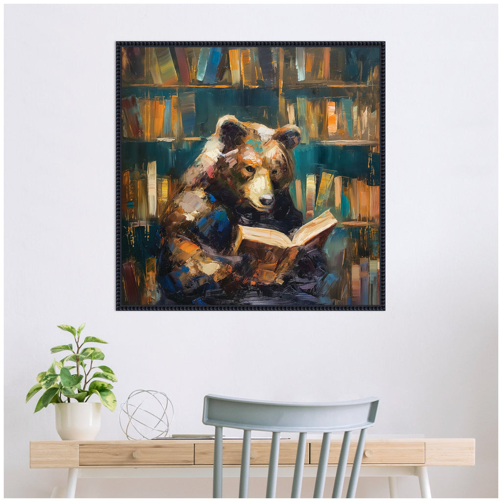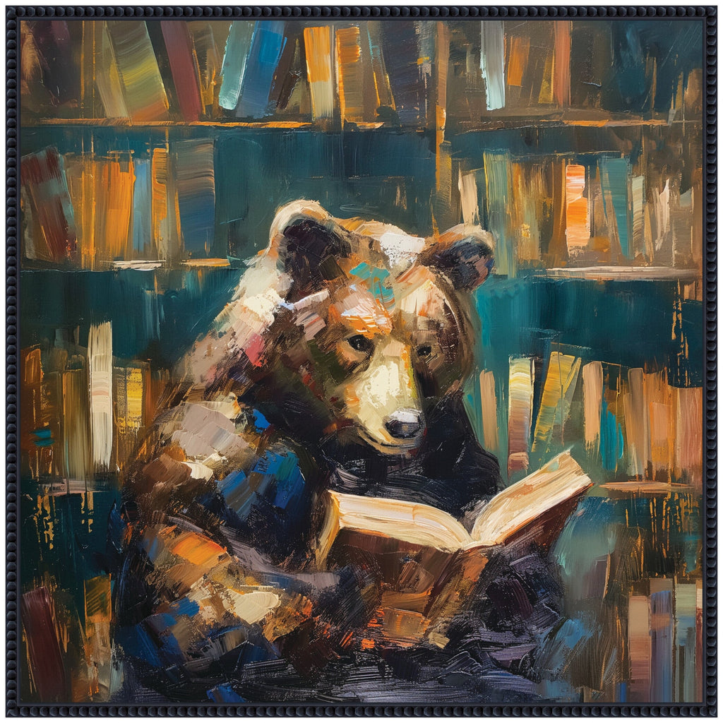 - Print "Traditional Bear Reading in Library" ©2024 The Creative Bunch Studio