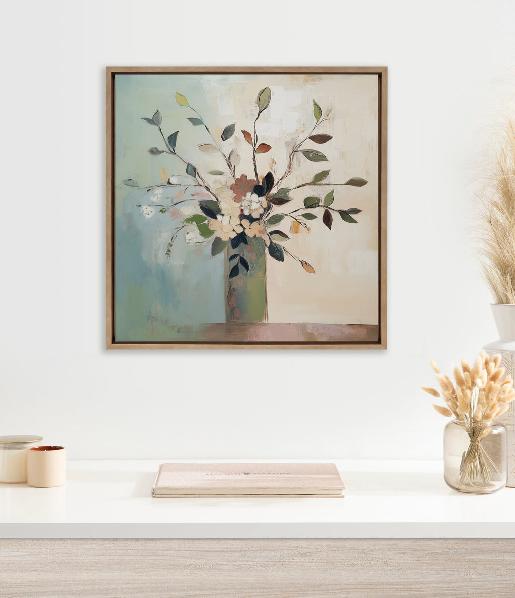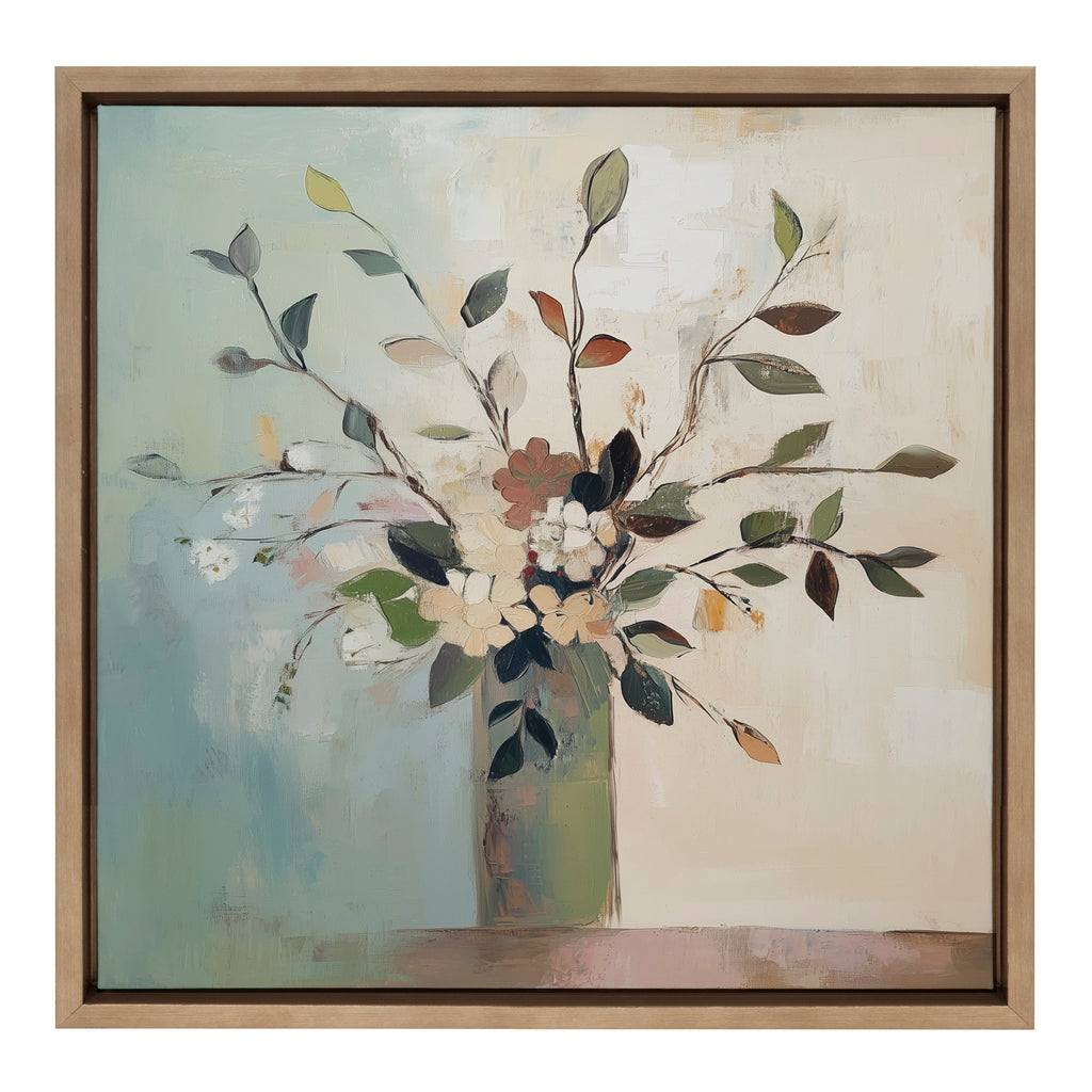 This charming botanical print features delicate floral elements arranged in an elegant, bohemian-inspired composition. Printed and framed in the USA in Waunakee, Wisconsin, this framed floating canvas art will be a pleasure to look at every day in your living room, bedroom, office, or any room in the home. This art also makes an excellent gift for birthdays, holidays, or house-warming parties. Printed on gallery-wrapped canvas and framed with a lightweight polystyrene frame, this wall art is easy to display on the wall.