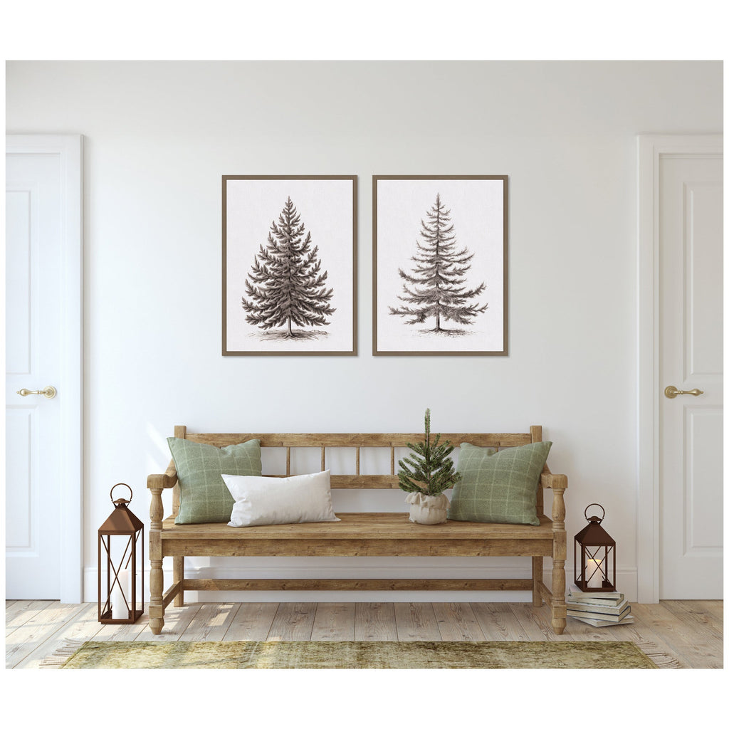 Elevate your space through thoughtfully curated style with this stunning piece designed by independent artist The Creative Bunch Studio and beautifully framed by hand in Madison, WI. The image is giclee printed using fade-resistant inks, ensuring every detail comes to life in rich, lasting color. Set in designer moulding, its a Vintage accent crafted to make a statement. Visual Story: The artwork depicts a beautifully detailed monochrome sketch of a majestic evergreen tree. The intricate arrangement of branches and foliage captures a serene, natural essence. Its rustic style evokes a tranquil, timeless atmosphere.