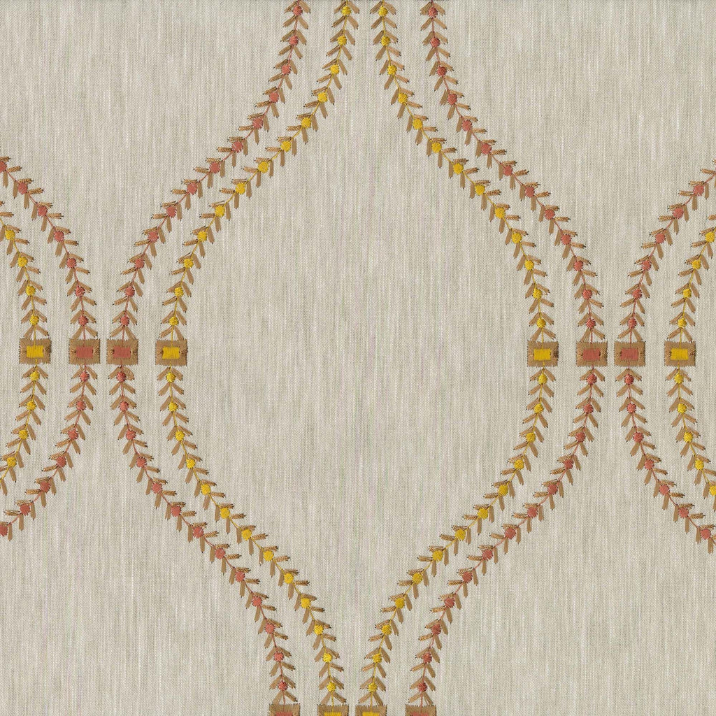 Rustic Charm: Earthy Tan Linen Sheer Curtains with Ogee Trellis Embroidery