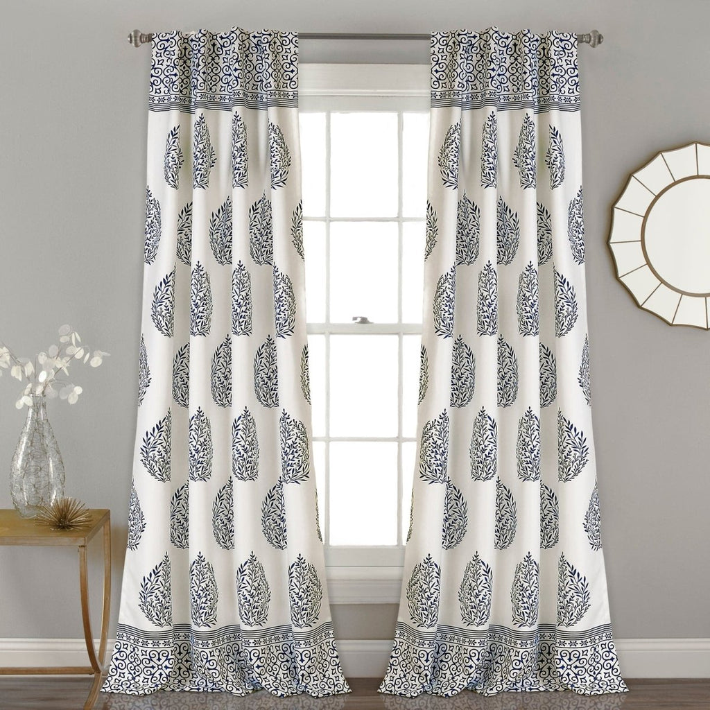 When you purchase the Teardrop Leaf Light Filtering Window Curtain Panel Set, you will receive two beautiful window panels. Each panel measures 52 inches in width. You can choose from lengths of 63 inches, 84 inches, 95 inches or 108 inches. This style is available in three color options, including gray, navy and blue, but some colors may not be offered in every size.