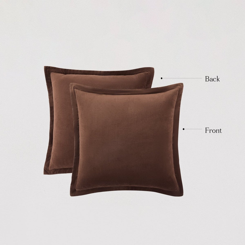 Experience the timeless style and luxurious comfort of the Terran Velvet Euro Sham Cover. The reversible design features earthy tones on soft matte velvet, adding stunning texture and warmth to your bedding ensemble. A simple flange border completes the look, offering a polished finish that makes this sham an elegant accent piece for any bedroom.