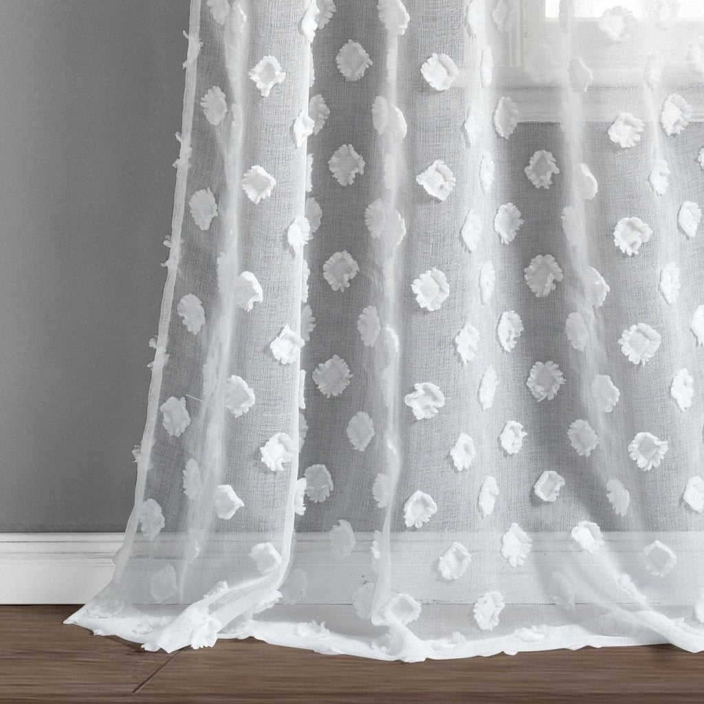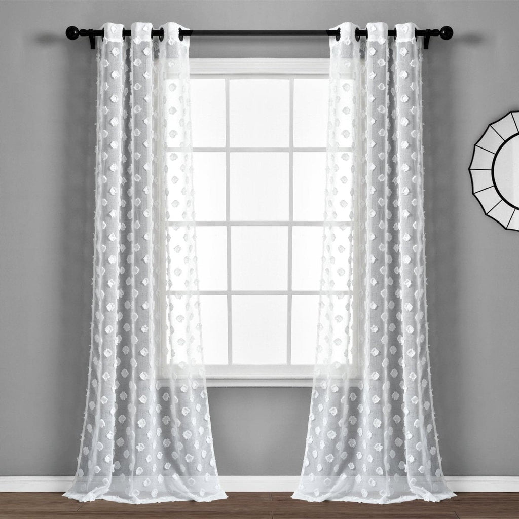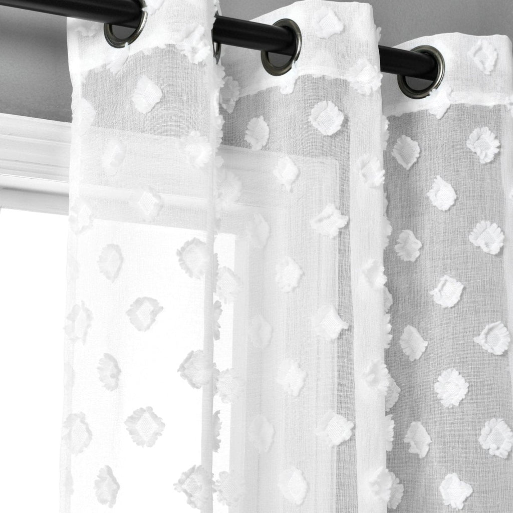 You will love this new Textured Dot Grommet Sheer Window Curtain Panel Set which will let plenty of light into your home while still providing privacy from outsiders. The textured dot pattern adds that little something extra to your space.