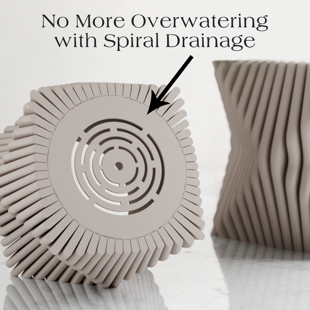 The TIDE planter was inspired by our TIDE vase design. It was created to embody the graceful movement of ocean waves, translating that fluidity into a modern, sculptural design. Its twisted silhouette and ribbed texture bring a sense of calm and elegance to any space, serving as a captivating centerpiece for your floral arrangements. Perfectly fitted drip tray saucer included!