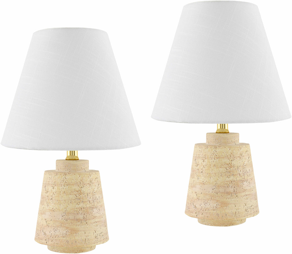 Material: Body: Resin / Shade (Outside): Linen, Polyester / Shade (Inside): Polyester / Finial: Iron |