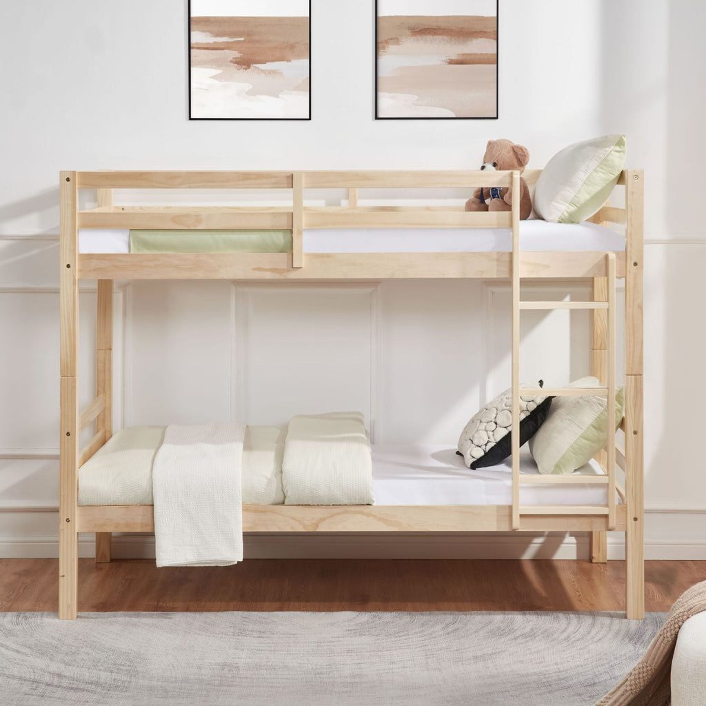 Welcome home the versatile Twin-Over-Twin Bunk Bed in attractive Natural. Meticulously engineered for compact living, this space-conscious design delivers practical sleeping solutions without sacrificing structural integrity or visual appeal. Supplies bedding capacity for a duo of overnight guests.