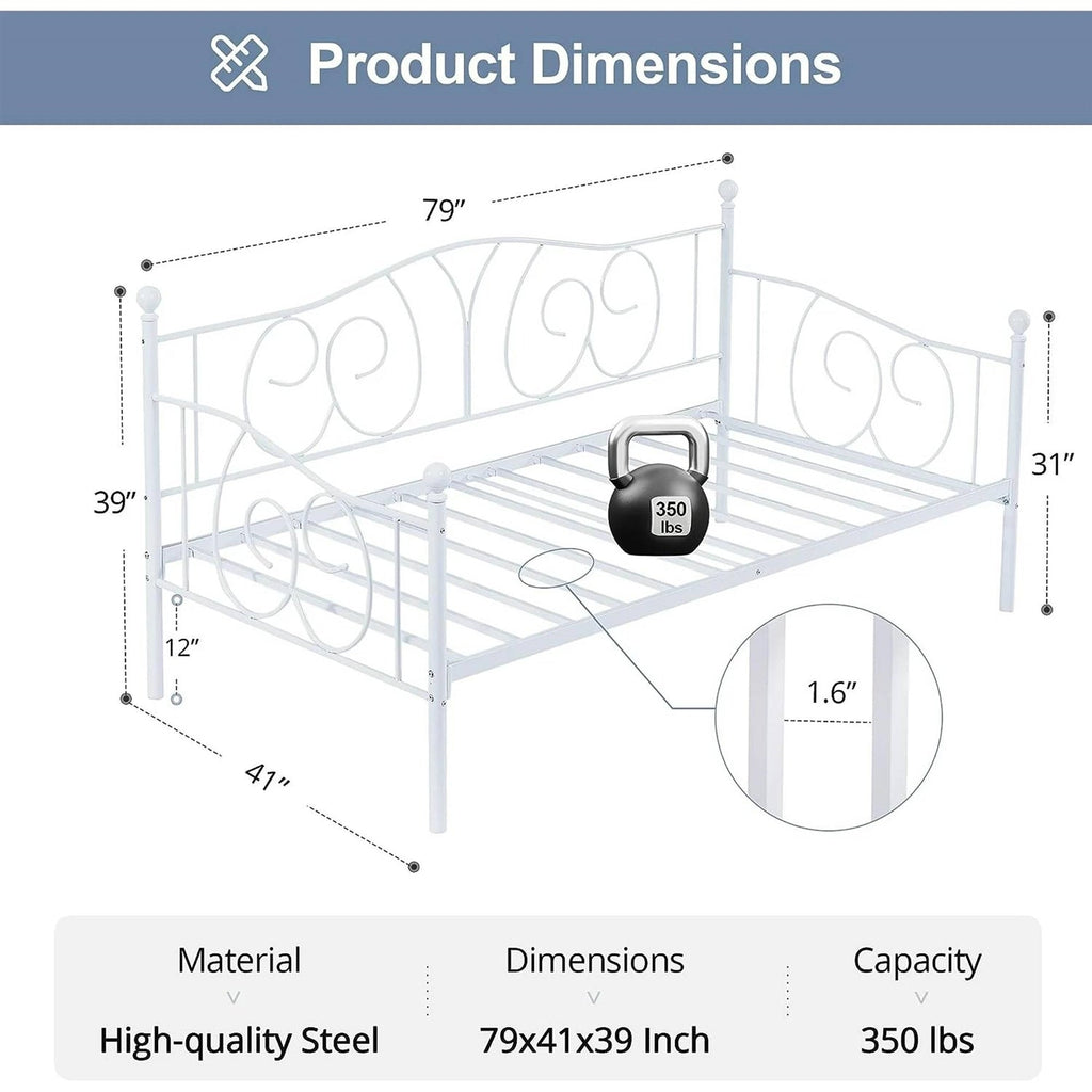 - Twin size Victorian White Metal Daybed Frame - 350 lbs. Weight Capacity
